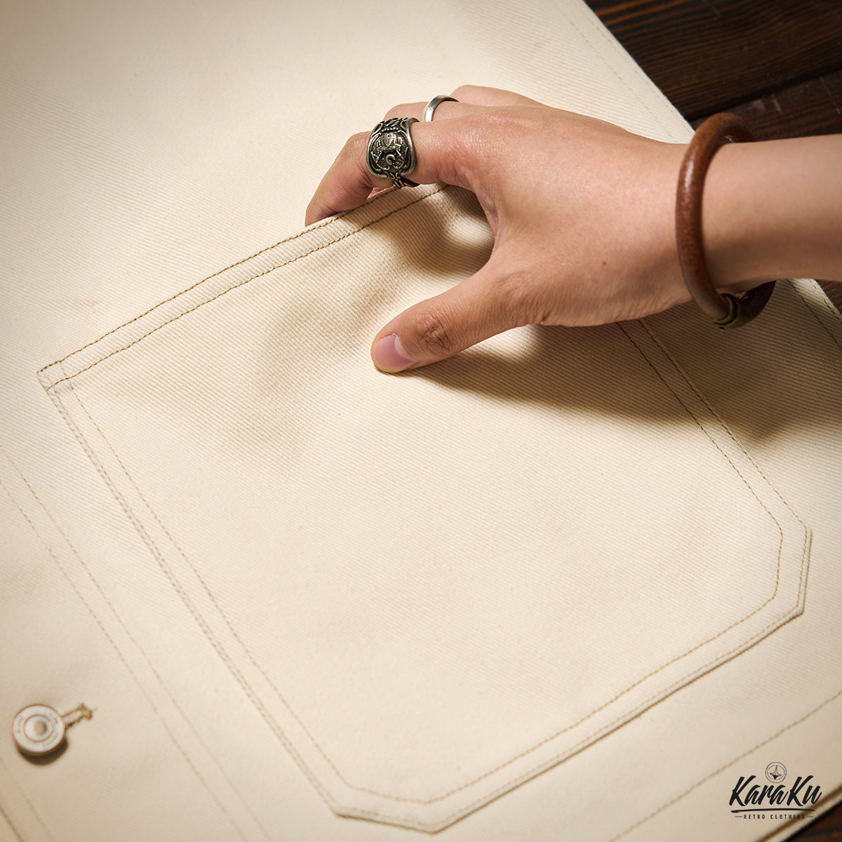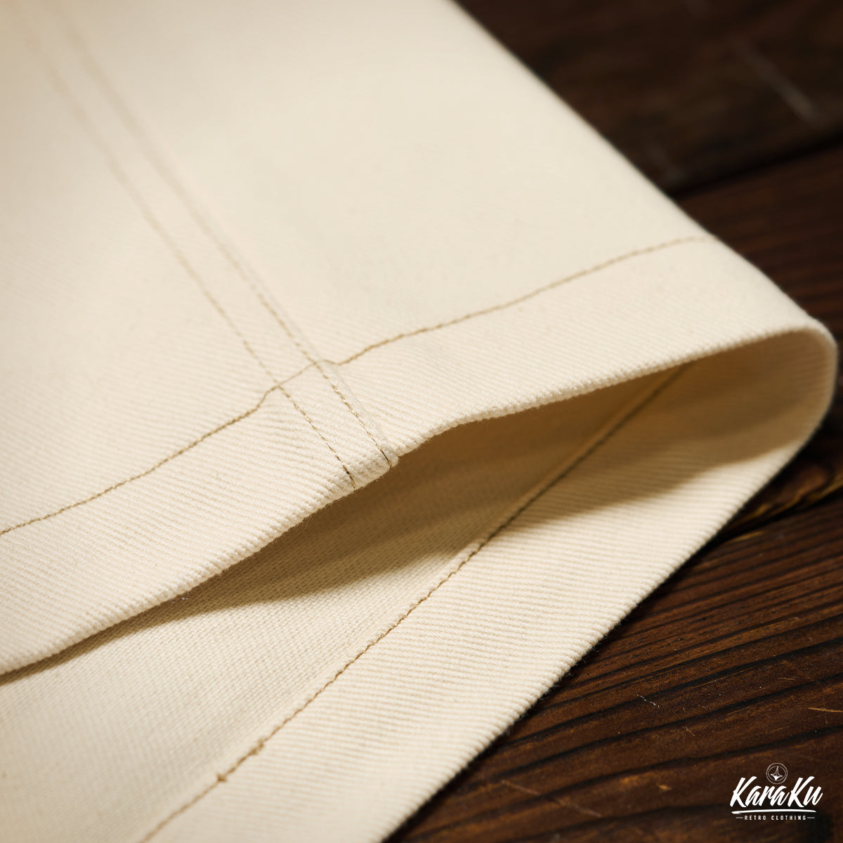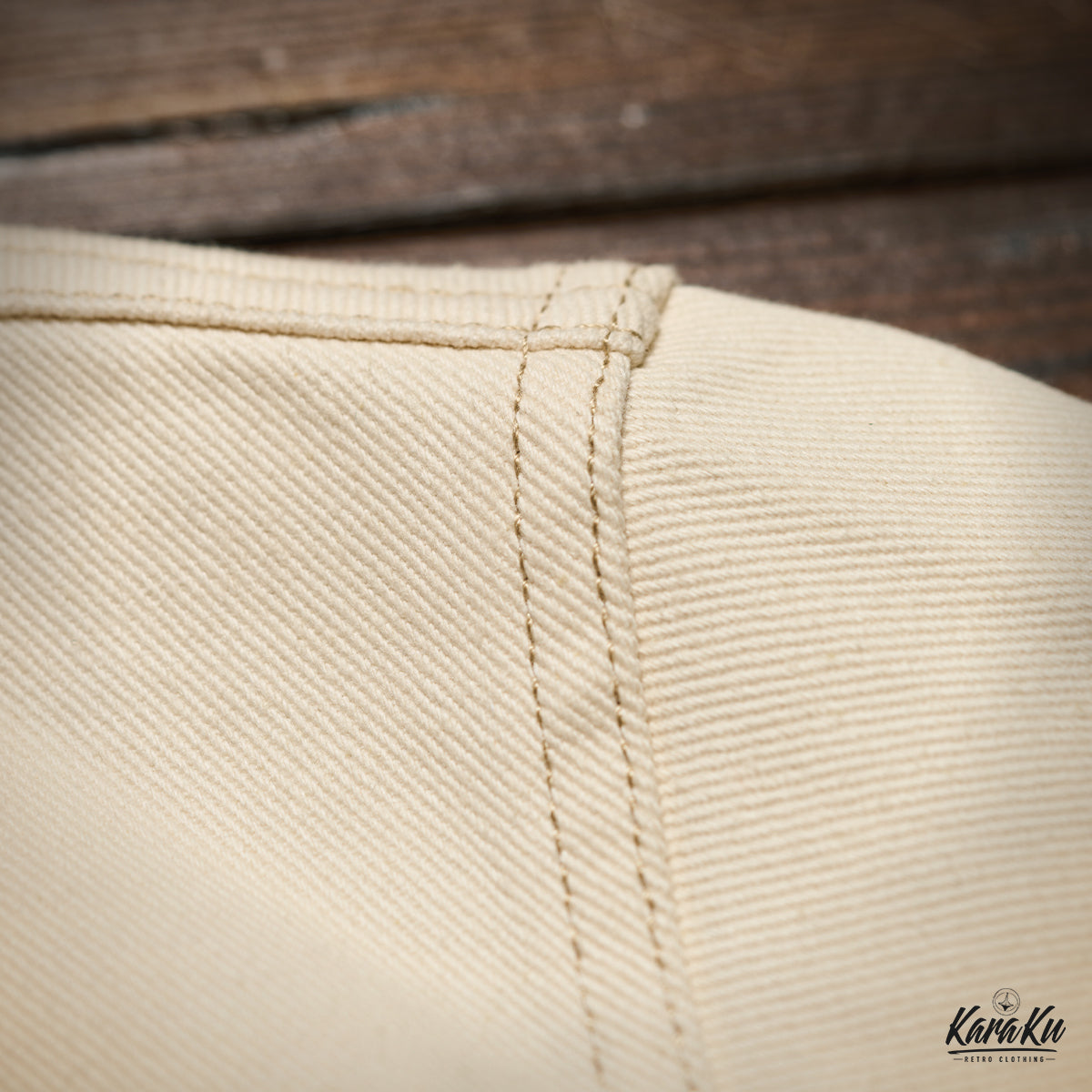 13.5ozコットン100%の程よい肉厚のデニムを採用、肌触りが良く重量感がある。