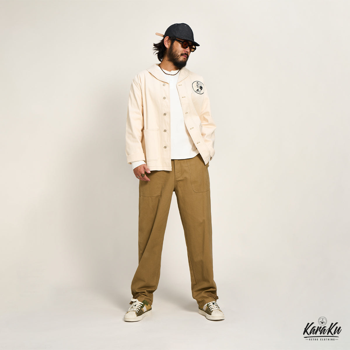 カバーオールは、ワークウェアとしての機能性を兼ね備えたシンプルで丈夫なアウターであり、