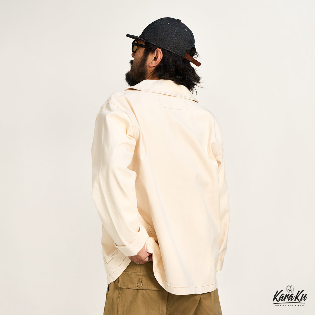 「カバーオール」とは、シャツジャケット型のワークジャケットの総称で、