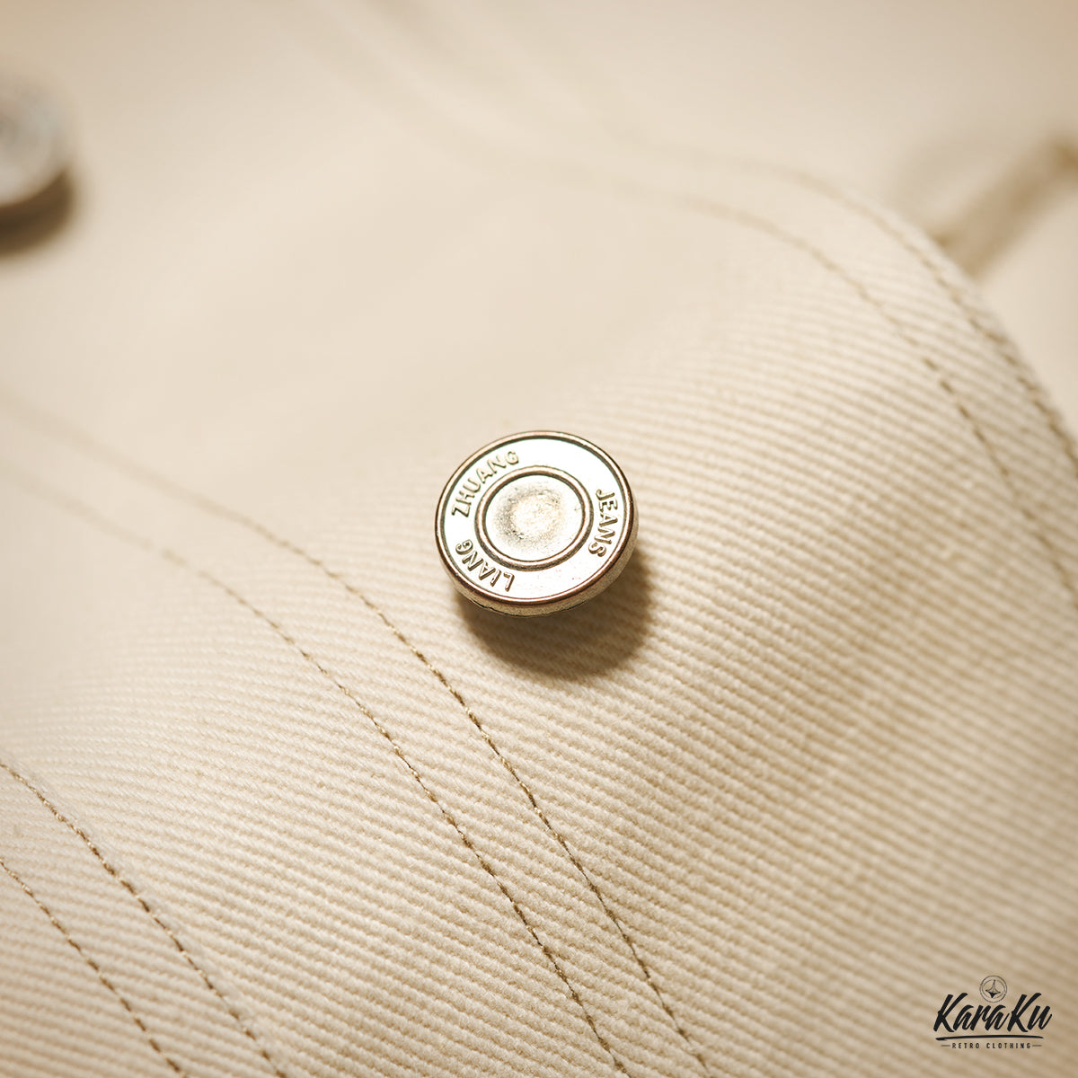 フロントに4つポケットがあり、フロントはメタルボタンです。