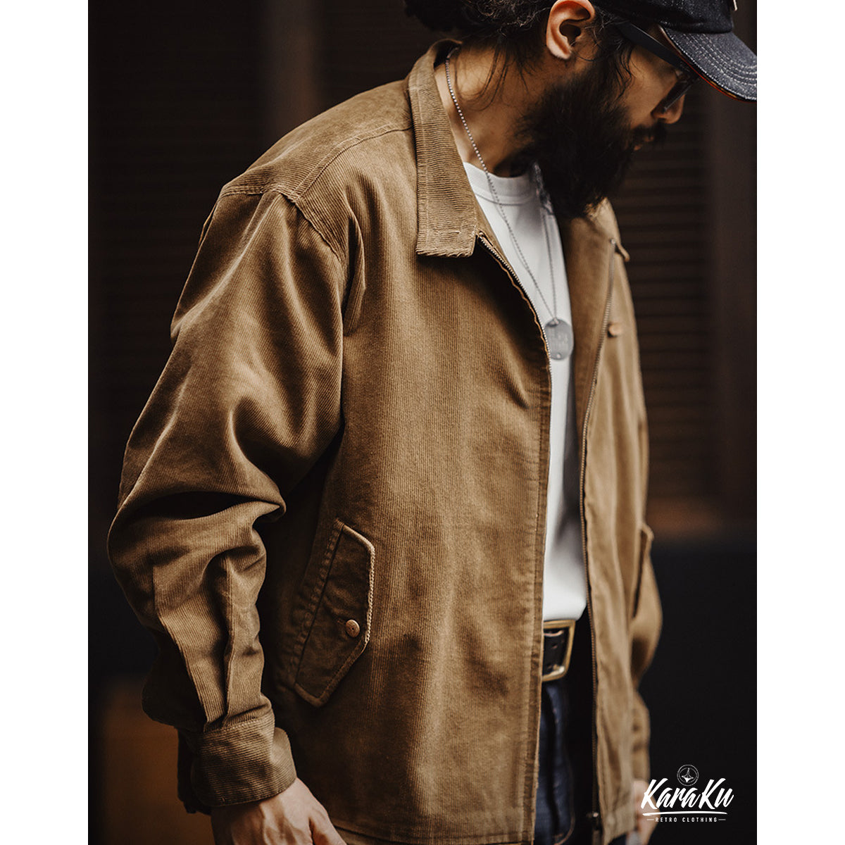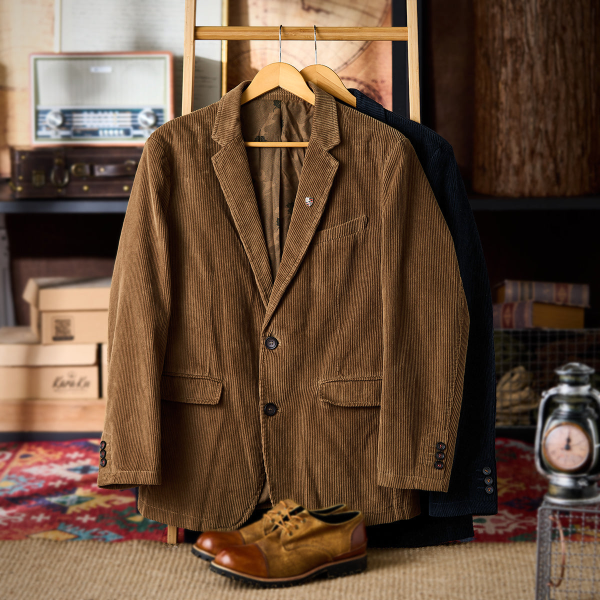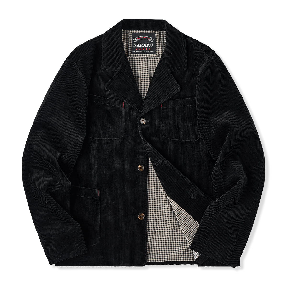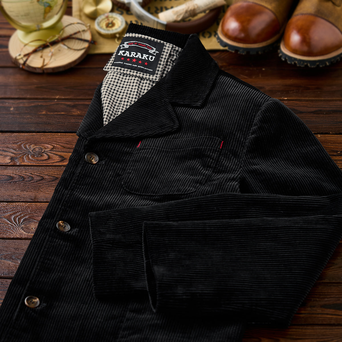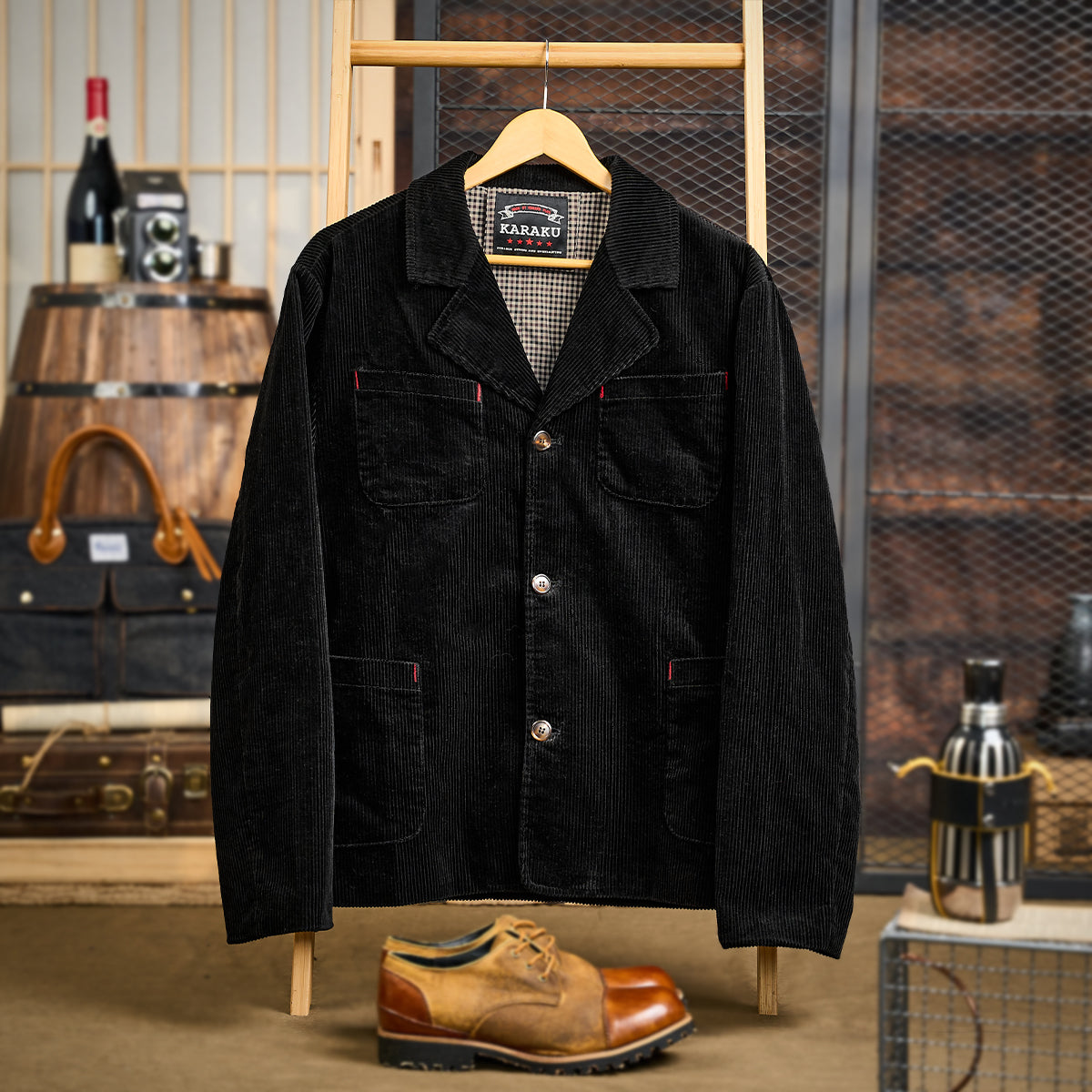 秋冬シーズンの定番アウターであるコーデュロイジャケットは、カジュアルさと上品さを兼ね備えています。ベージュやブラウンなどの温かみのある色合いは秋らしい雰囲気を簡単に演出できます。KARAKUが一押しのアイテムはこちらのブルーのコーデュロイジャケットです。どんなスタイルにもマッチし、重ね着もしやすく、オフィスにもカジュアルシーンにも活用できる万能アイテムです。