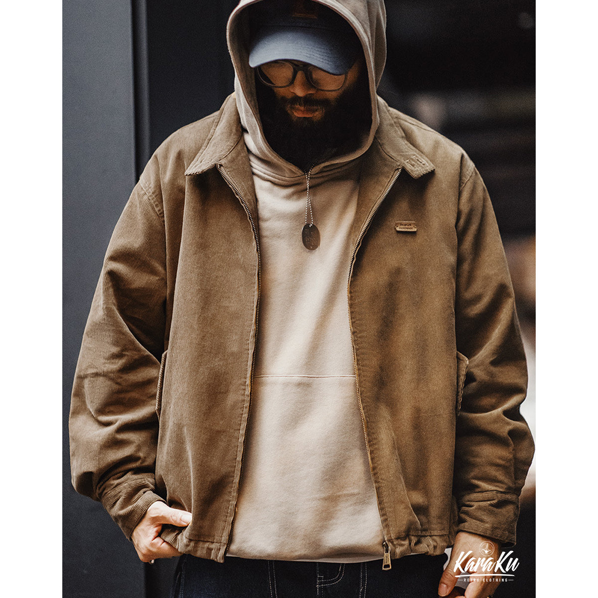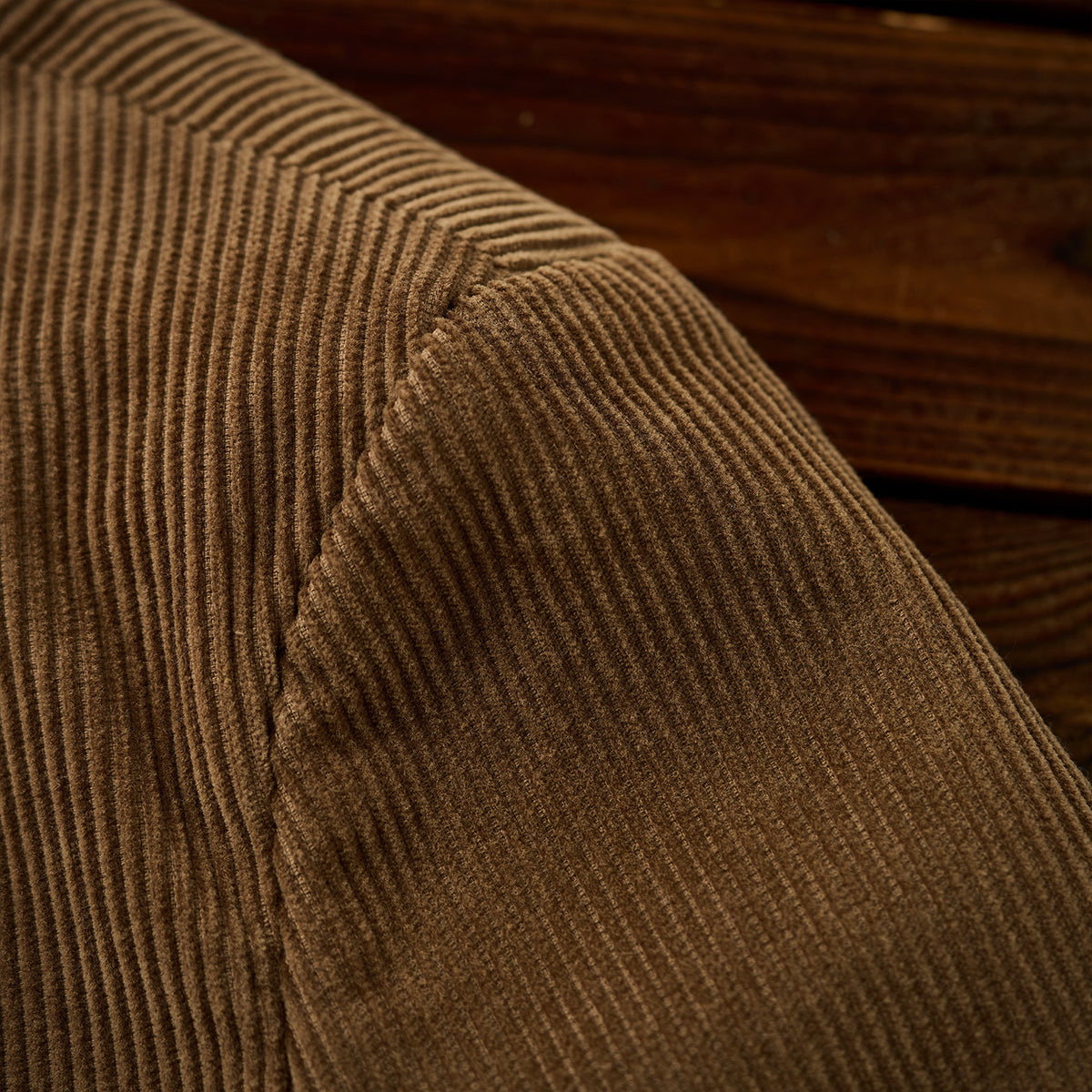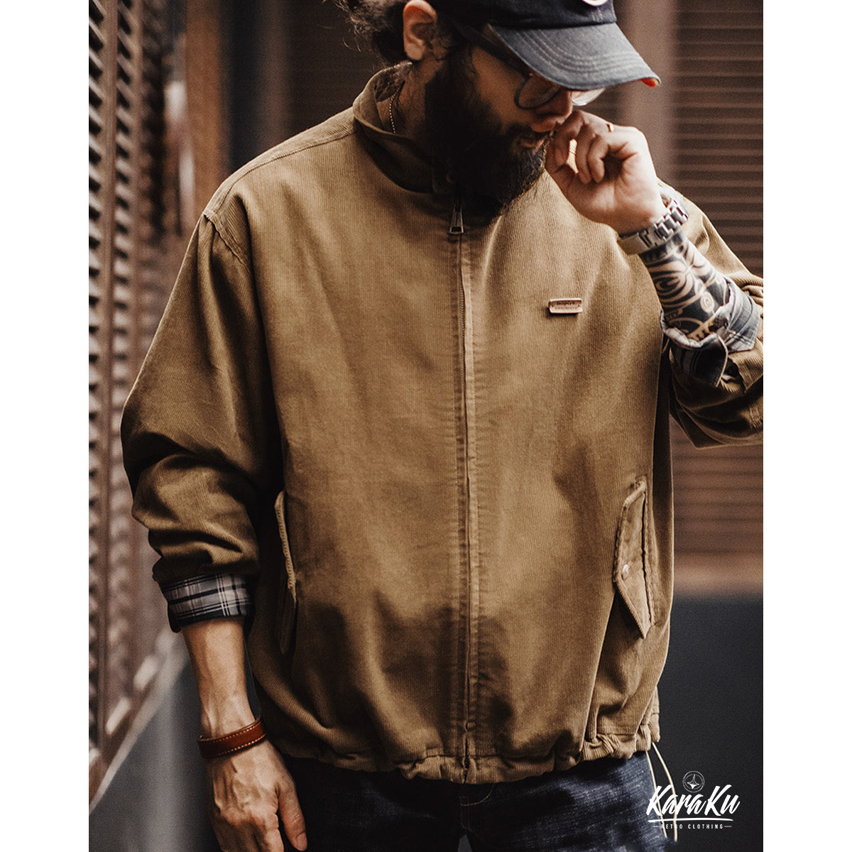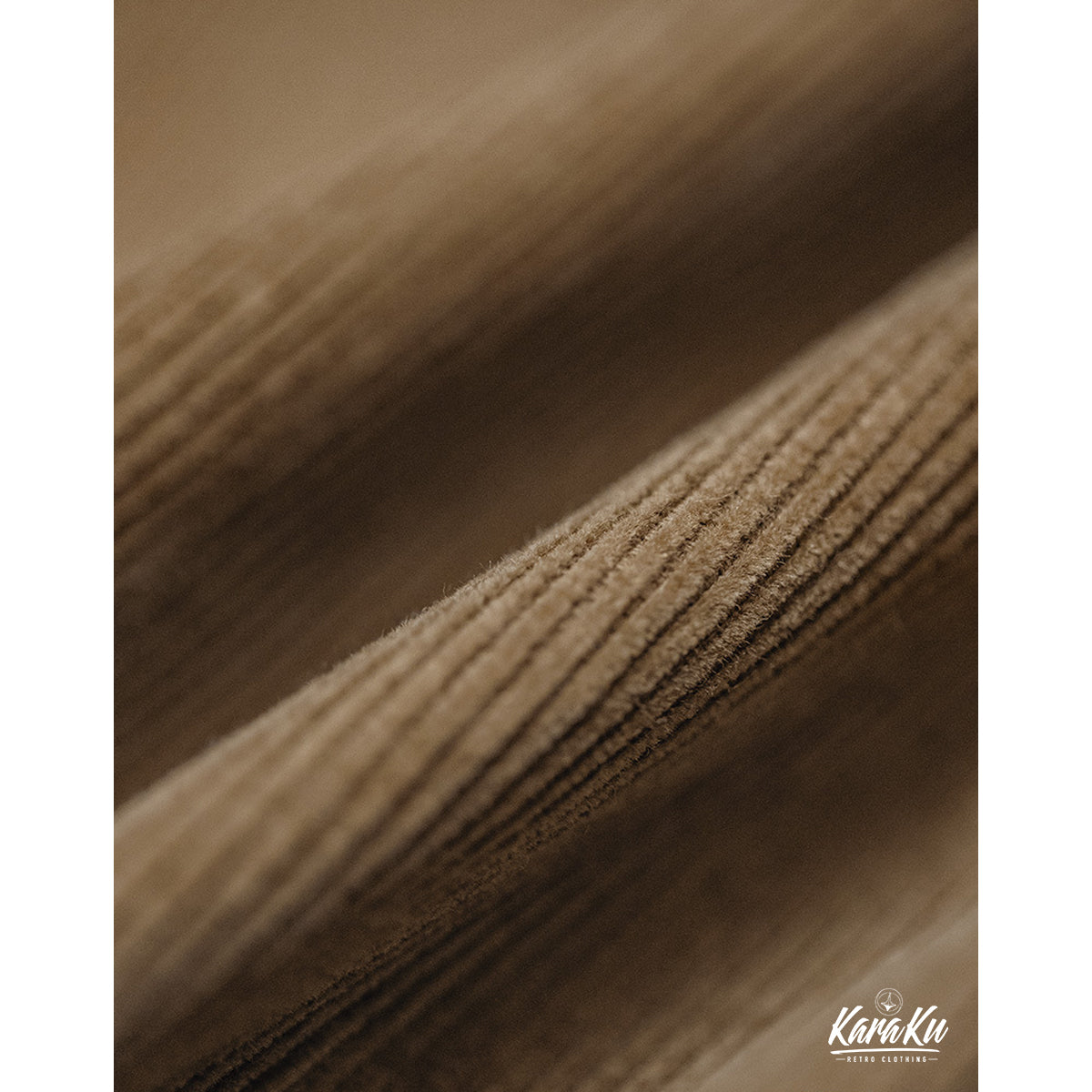 秋冬シーズンの定番アウターであるコーデュロイジャケットは、カジュアルさと上品さを兼ね備えています。ベージュやブラウンなどの温かみのある色合いは秋らしい雰囲気を簡単に演出できます。KARAKUが一押しのアイテムはこちらのブルーのコーデュロイジャケットです。どんなスタイルにもマッチし、重ね着もしやすく、オフィスにもカジュアルシーンにも活用できる万能アイテムです。