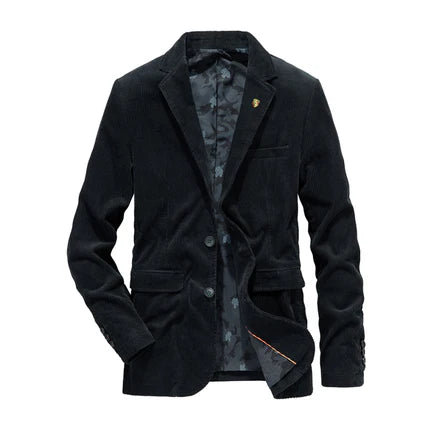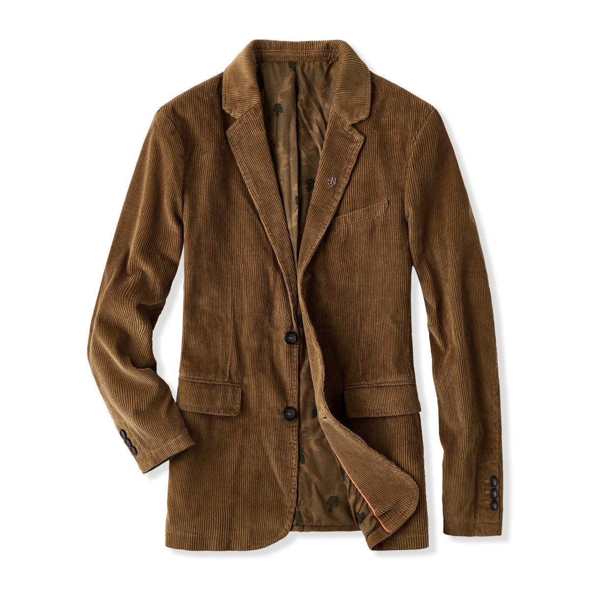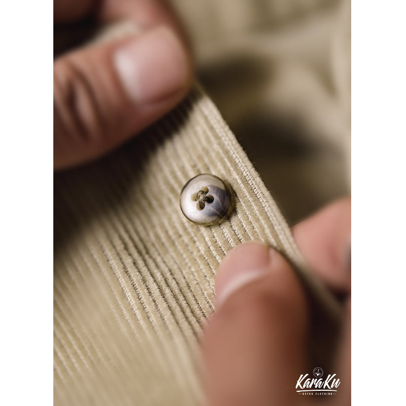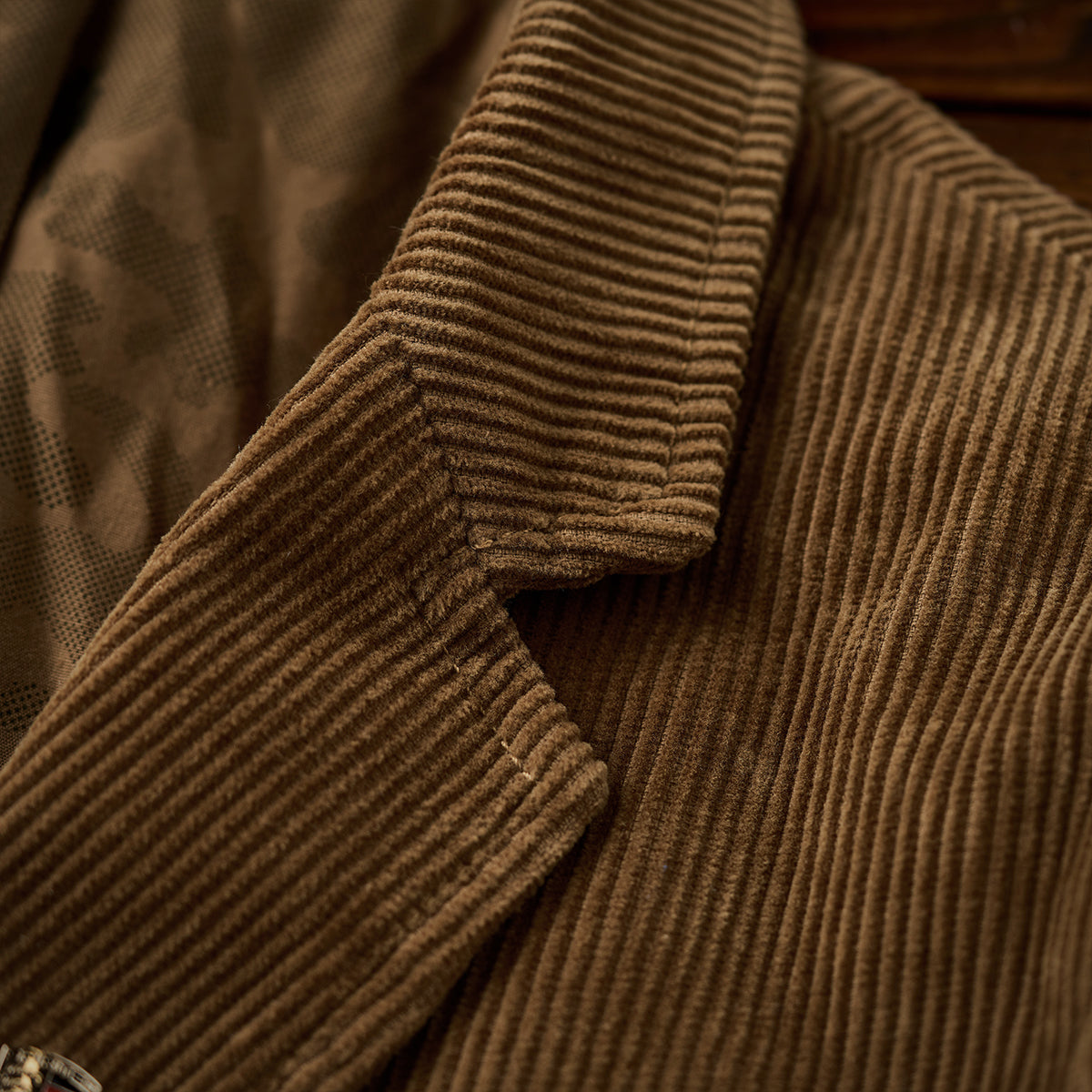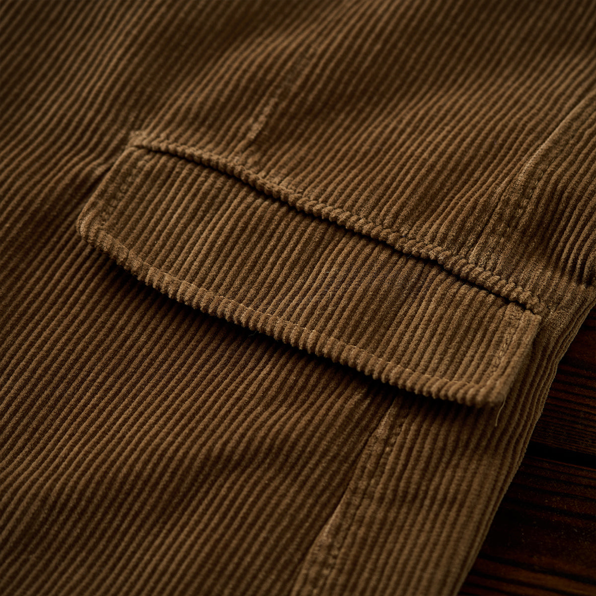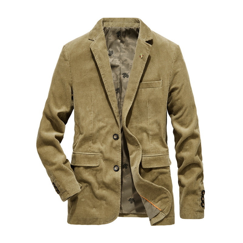 秋冬シーズンの定番アウターであるコーデュロイジャケットは、カジュアルさと上品さを兼ね備えています。ベージュやブラウンなどの温かみのある色合いは秋らしい雰囲気を簡単に演出できます。KARAKUが一押しのアイテムはこちらのブルーのコーデュロイジャケットです。どんなスタイルにもマッチし、重ね着もしやすく、オフィスにもカジュアルシーンにも活用できる万能アイテムです。