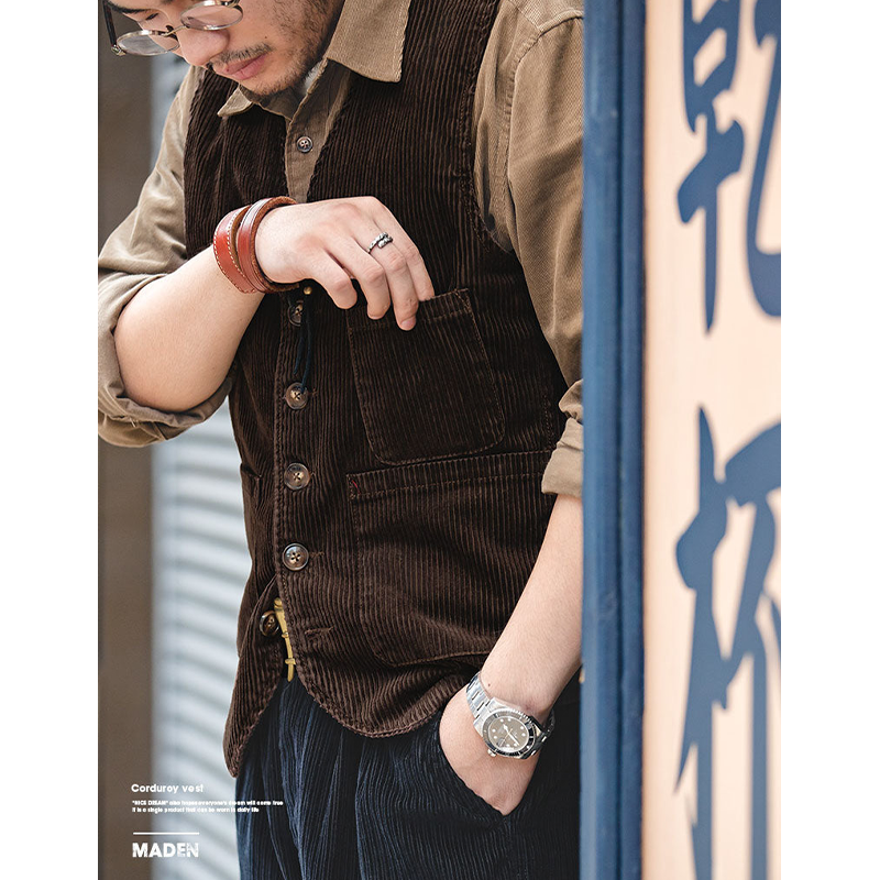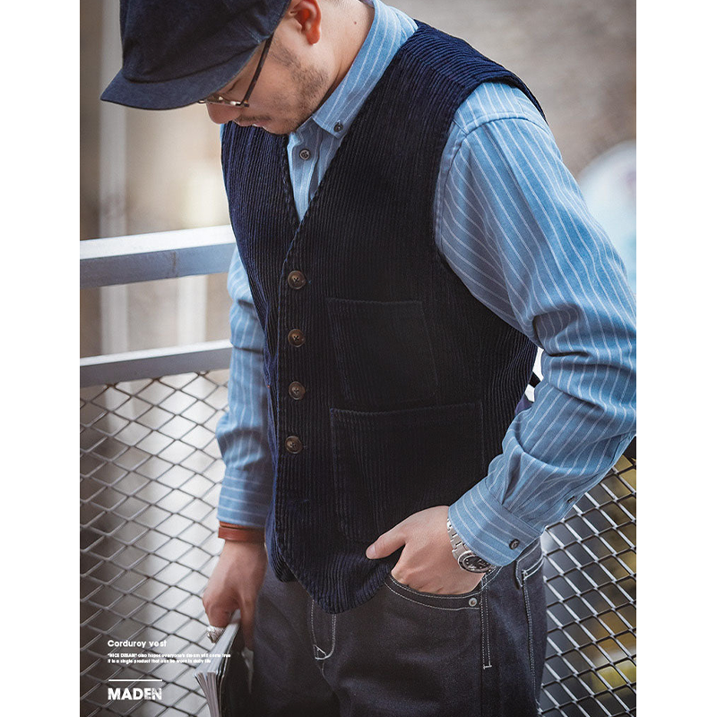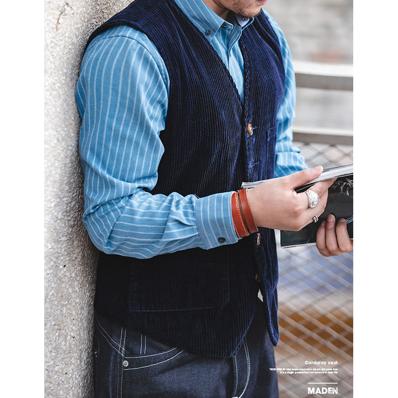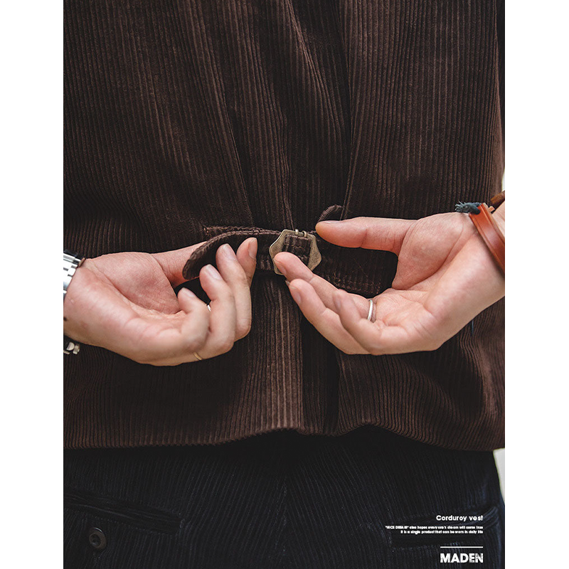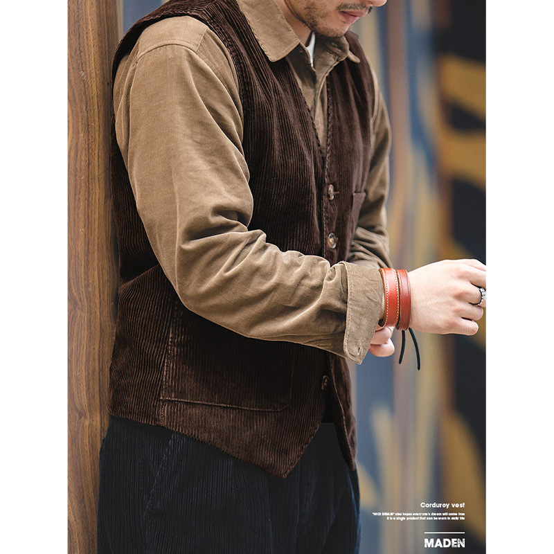 コーデュロイベストは、軽くて動きやすいのに、秋らしさを即座にプラスできる便利なアイテムです。