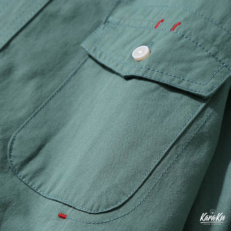 左胸元にポケット付き、小物を落とさないように同時に拘るポイント。
