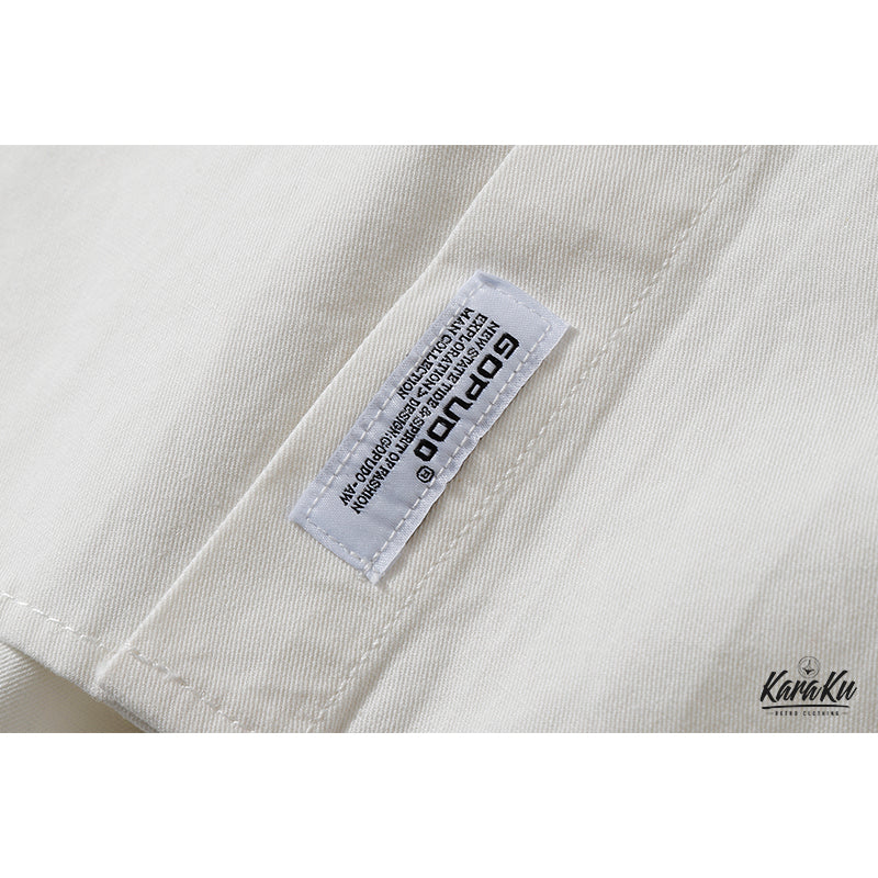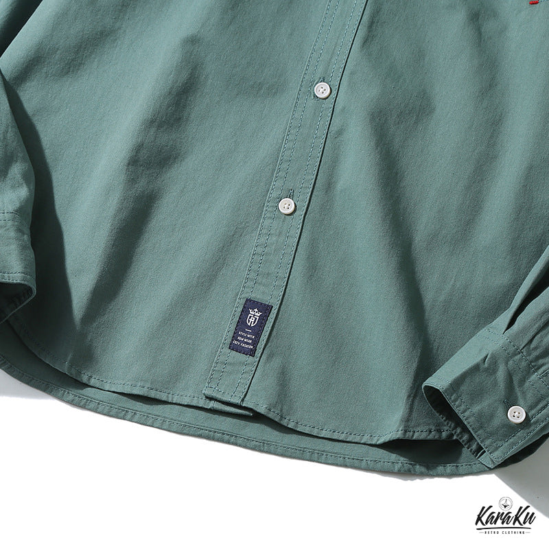 胸元にあしらわれた「R」のサガラ刺繍バッジが目を引くデザインで、