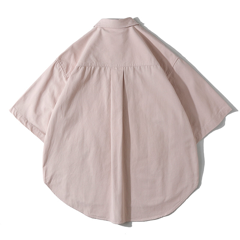 「海辺のレコードショップ」油絵柄ピンクキューバシャツ