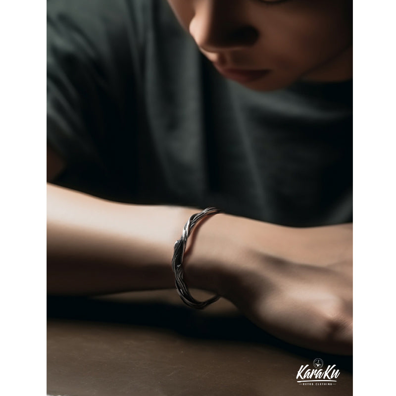 さりげない男っぽさとこだわりを感じさせるデザインのブレスレット。