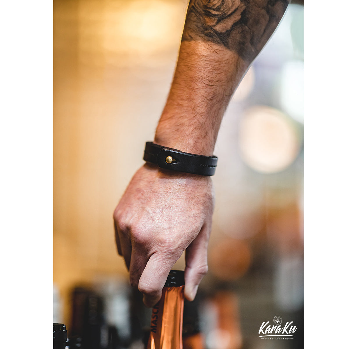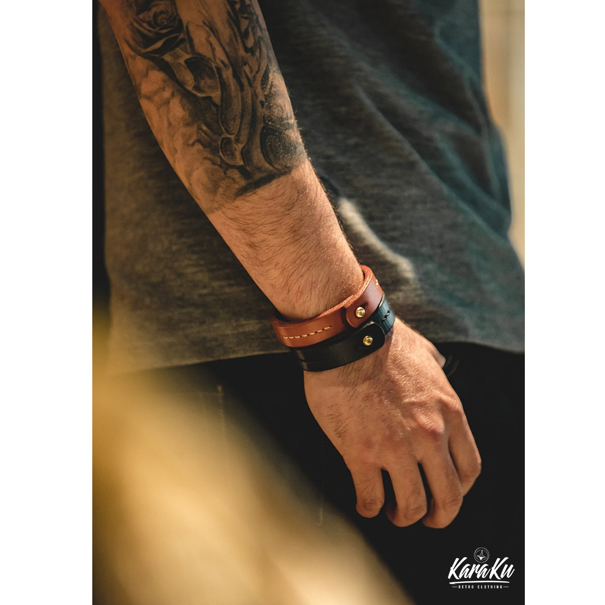 02.真鍮ギボシ留め 鞣し牛革ブレスレット