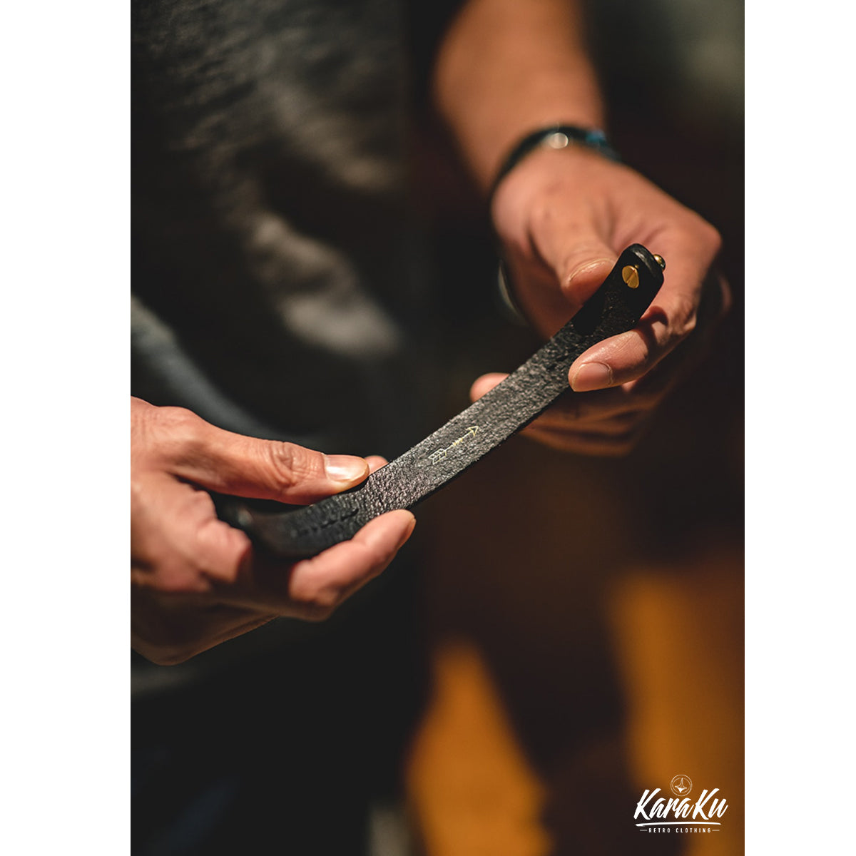 ダールブラウンとブラックに仕上げられたギボシホックとレザーのマッチングがタフな印象を与え、