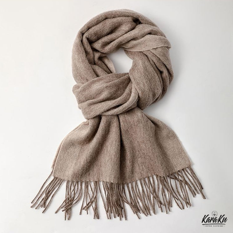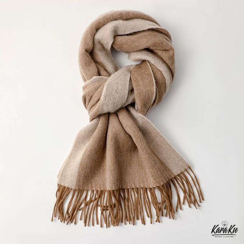 柔らかくウォーミーなウール100%素材を使用。ニュアンスの利いた美しいカラーが目を惹きます。両端は軽やかなフリンジで仕上げました。巻きやすい程よい幅も魅力。巻き方次第で色の出方も調節できるため、いろいろな巻き方でお楽しみいただけます。暗くなりがちな秋冬のスタイリングに、彩りを添える一枚です。