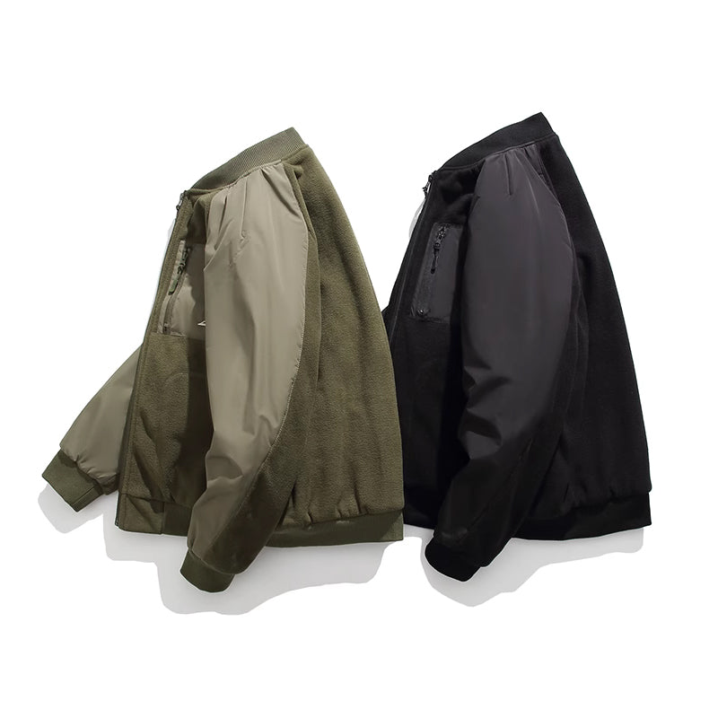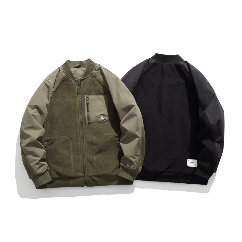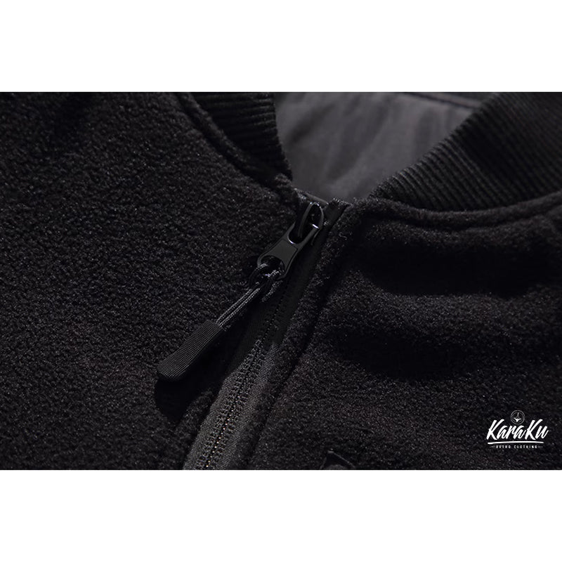 無地&ポーラーフリースリバーシブル仕様 スタンドカラーラグランスリーブジャケット