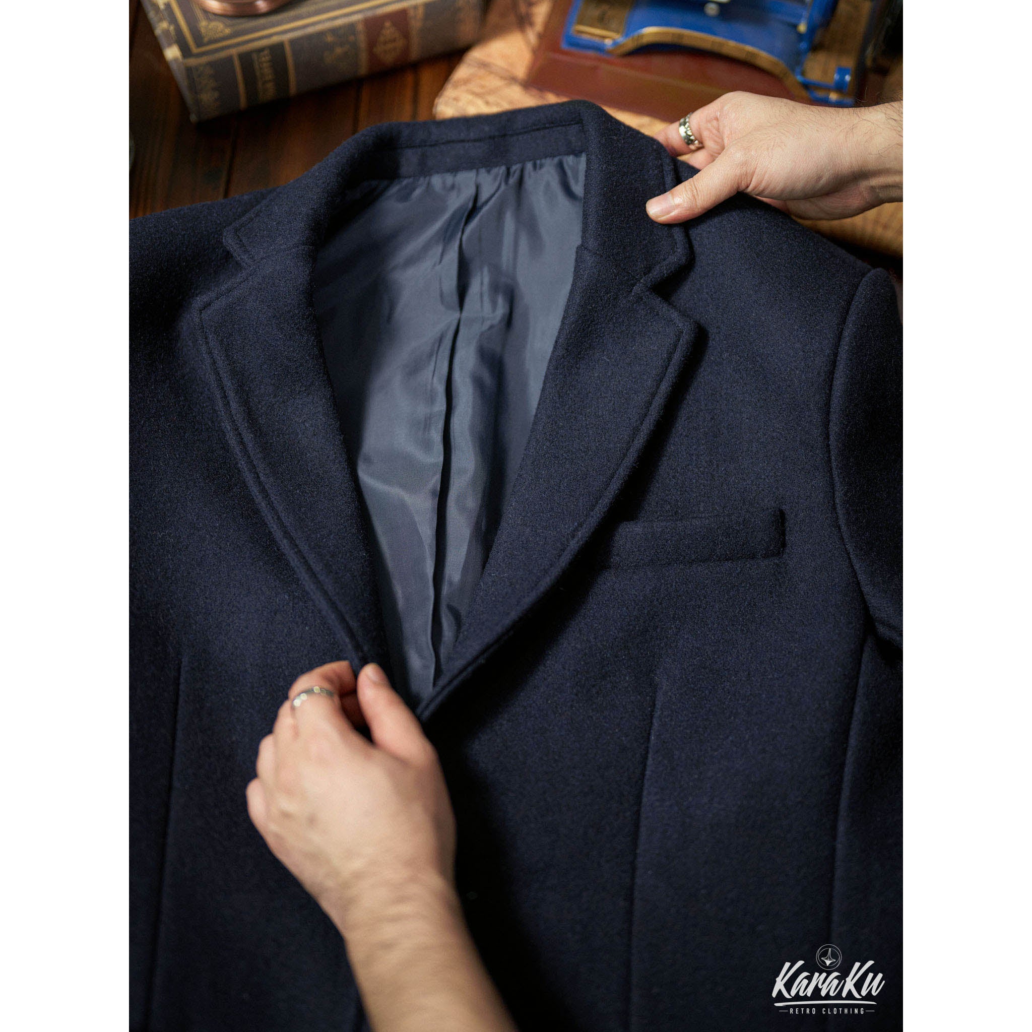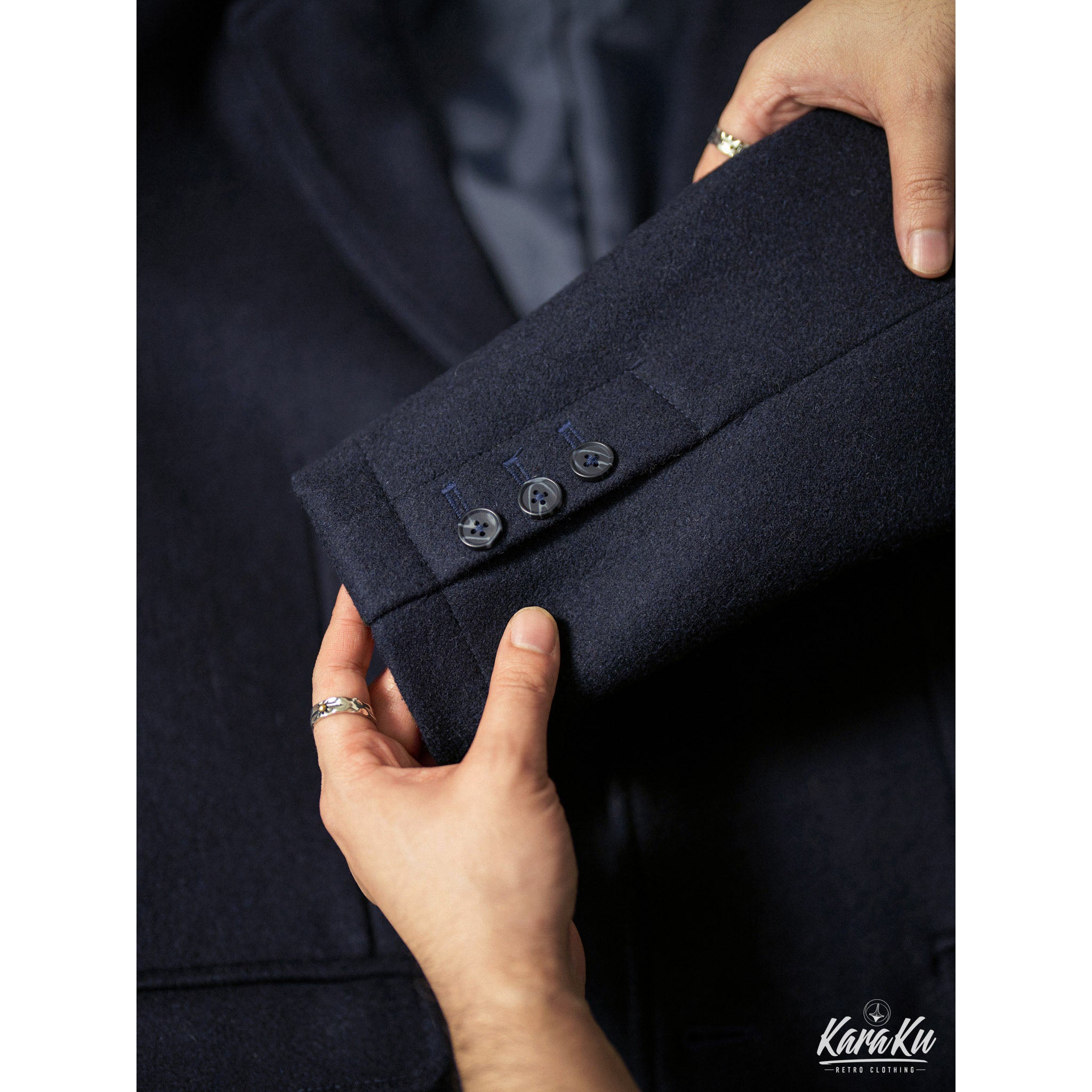 ピーコートは、スタイリッシュであるばかりか、実に機能的な服だ。着丈は足が動かしやすいように、短くカットされている。多くの動きを必要とされる甲板の上で、このコートはとても実用的であった。