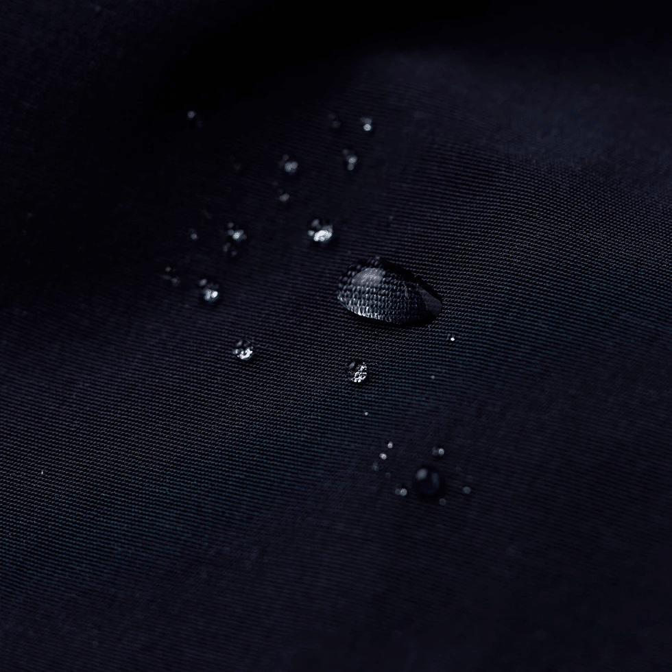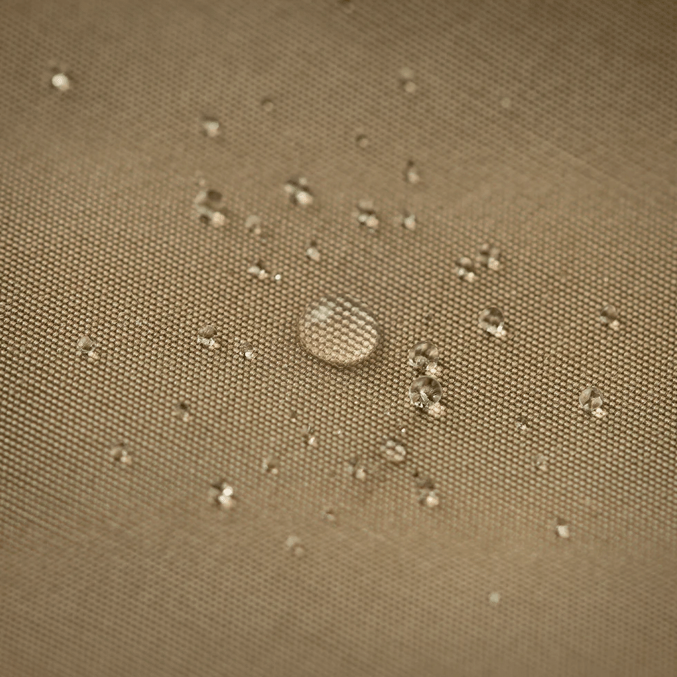 表側の素材にはテフロンファブリックロテクター加工を施しているので、水を弾き、小雨程度ならレインウェア不要。