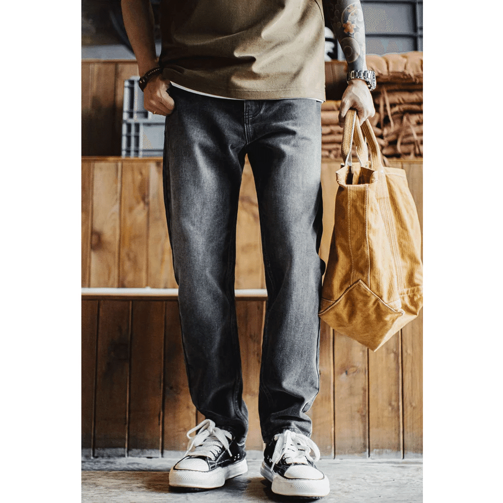 「ウォッシュド加工 微テーパードグレーデニムパンツ」