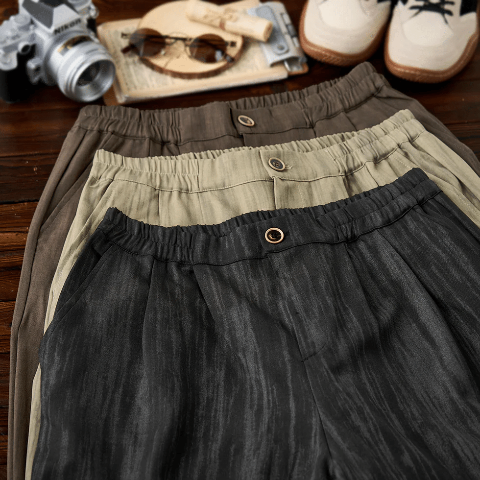 木目調の独特なストライプ柄が、秋らしい温かみと個性を添えるスラックス。シンプルなトップスと合わせるだけで、自然とコーディネートが映えます。ストレートシルエットがスマートな印象を保ちつつ、カジュアルにもフォーマルにも馴染む万能さを発揮。