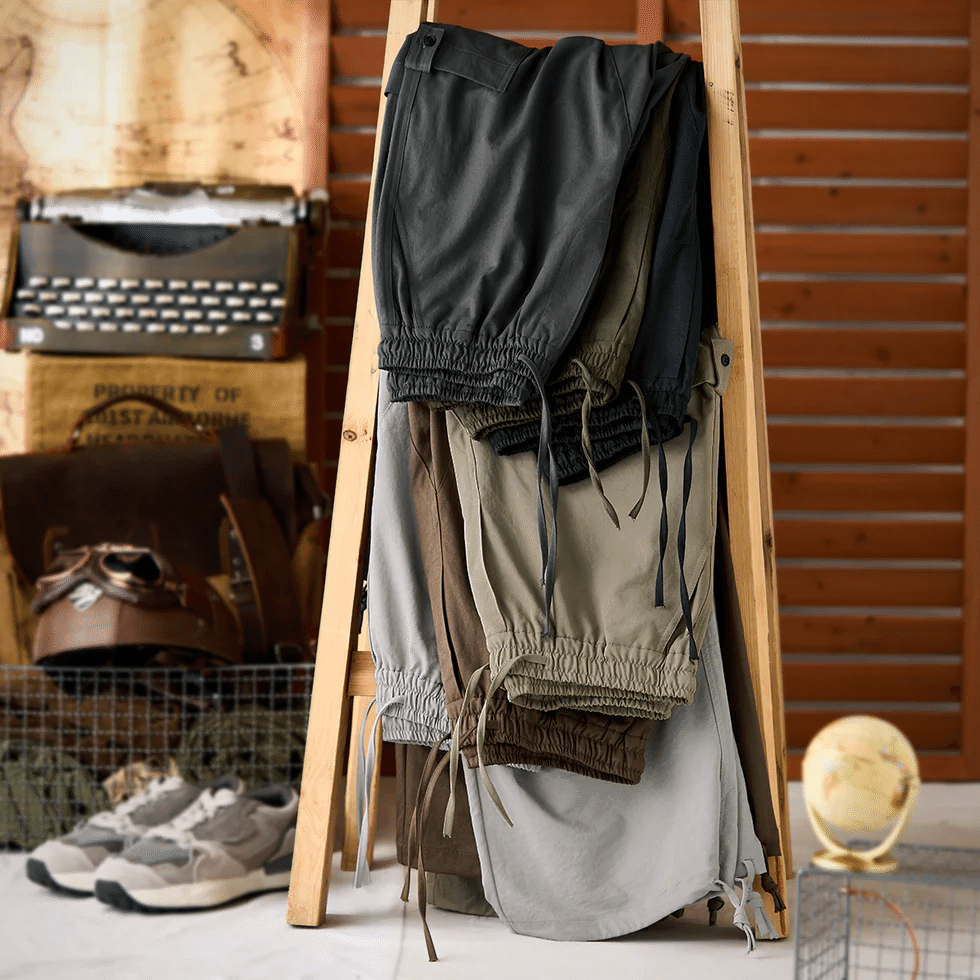 「多色展開 膝タック入りパラシュート型カーゴイージーパンツ」