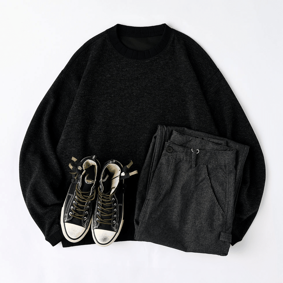 グレーを基調にしたデニムは、落ち着いた秋のトーンと相性抜群。ウォッシュド加工による奥行きのある色落ちが魅力で、穿き込むほどに表情が増していきます。ジャケットで大人っぽく仕上げるのも良し、フーディでストリート感を出すのもおすすめ。