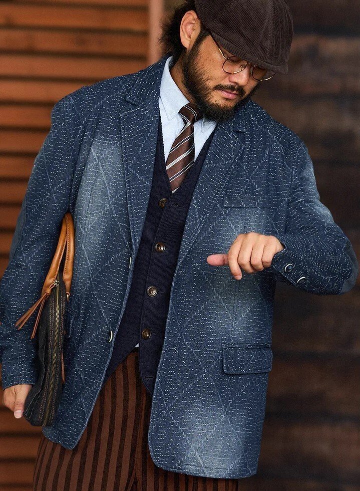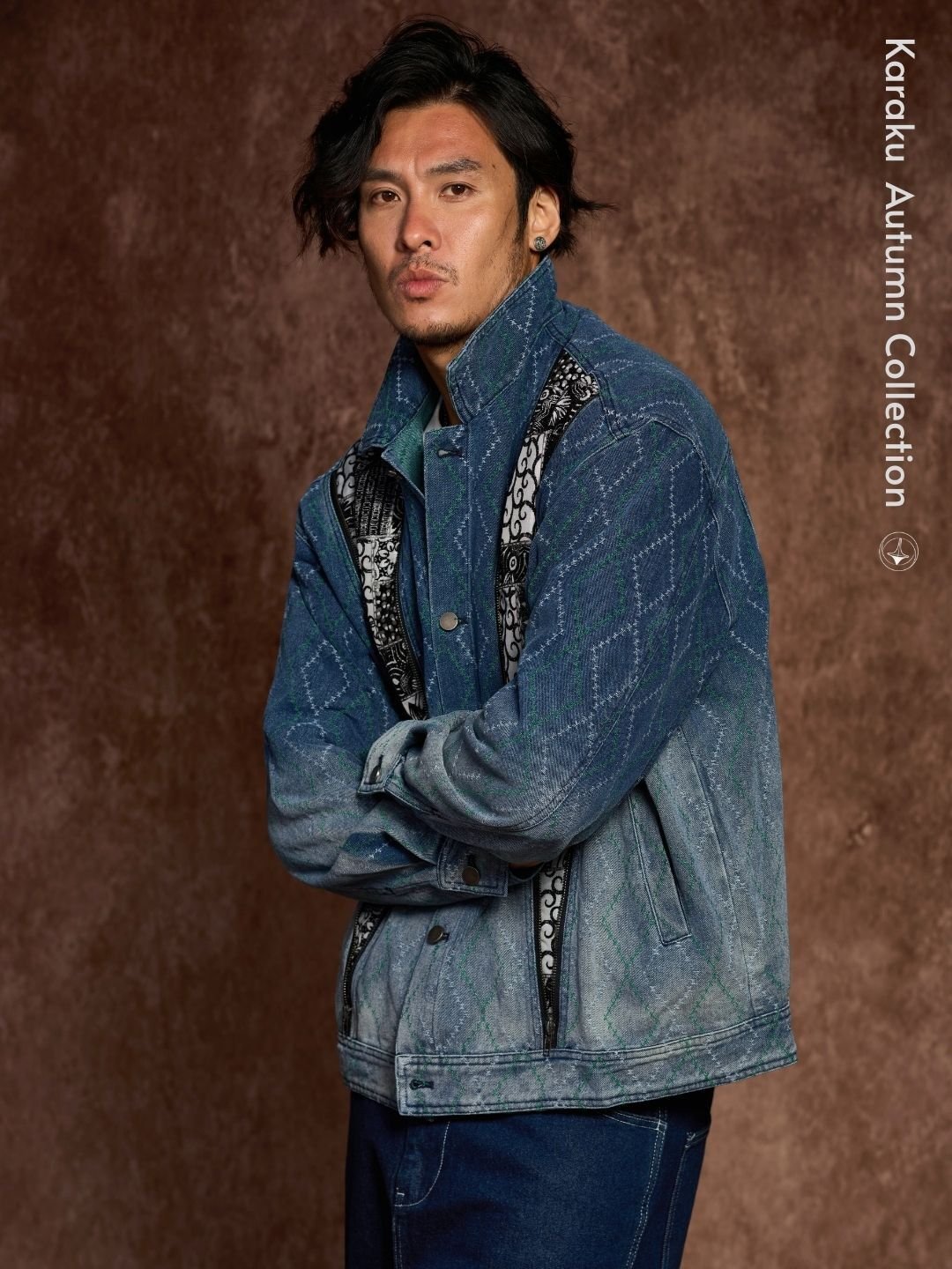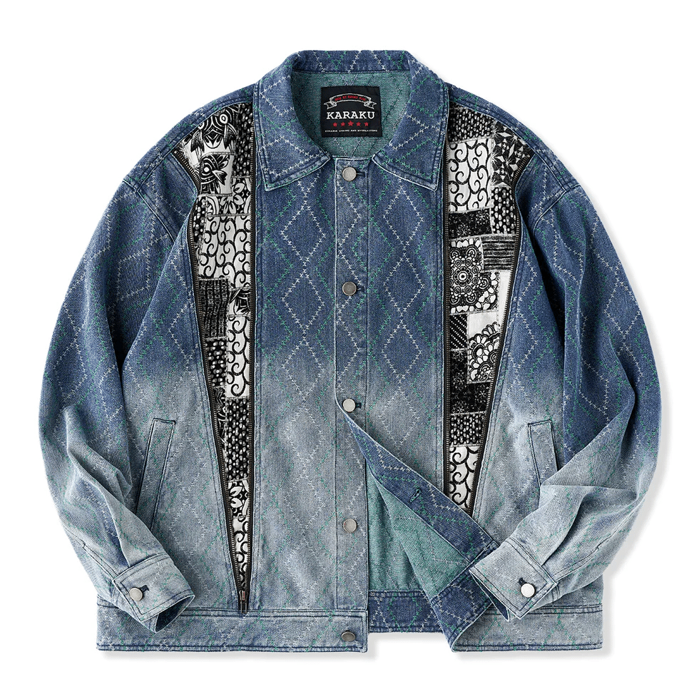 シェニール織切替 ダイヤジャガードデニムジャケット