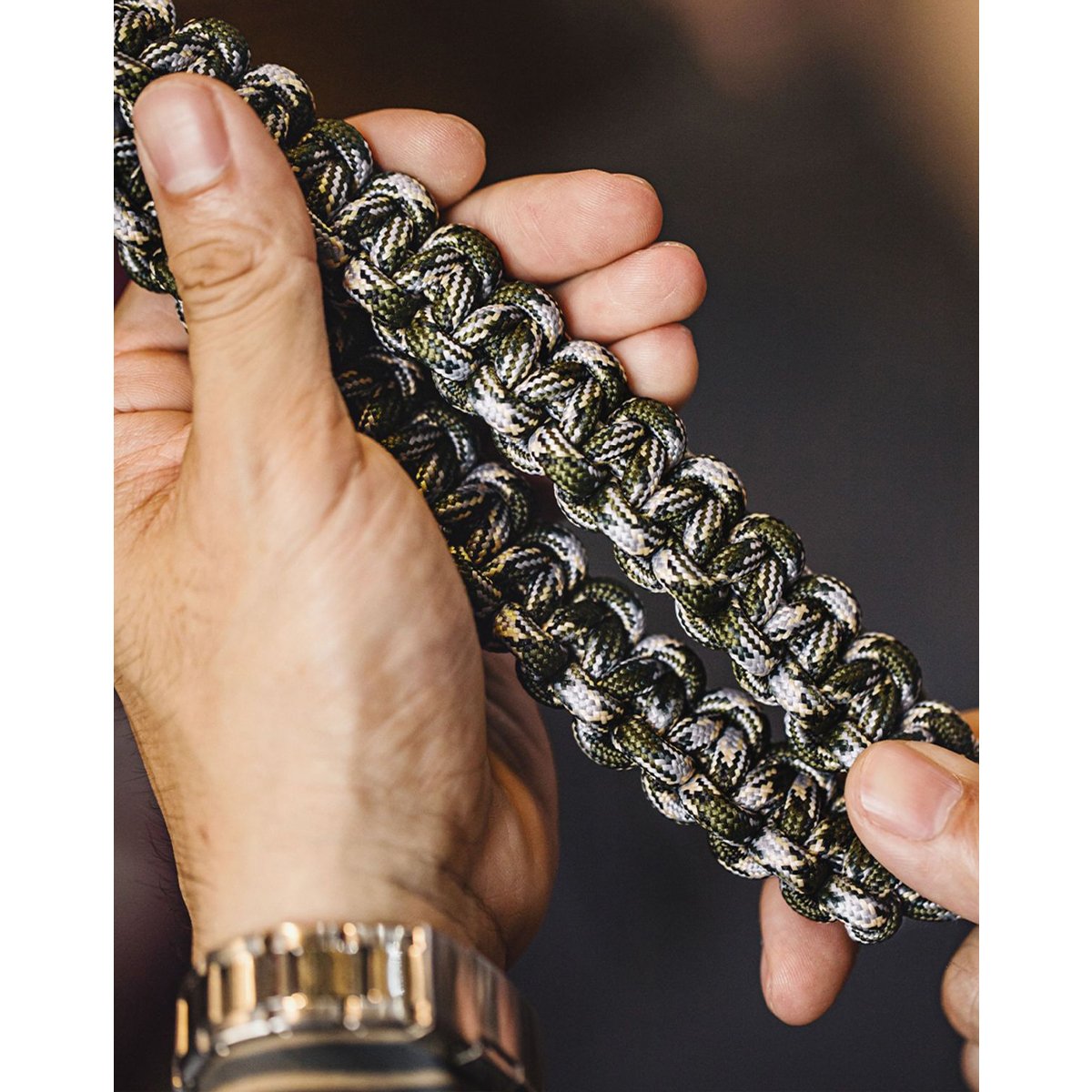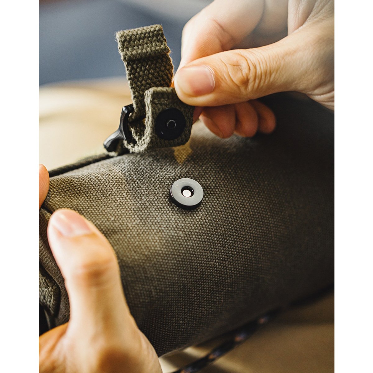 アウトドアライクな編み込み仕様で、肩掛け・斜め掛けのどちらにも対応。