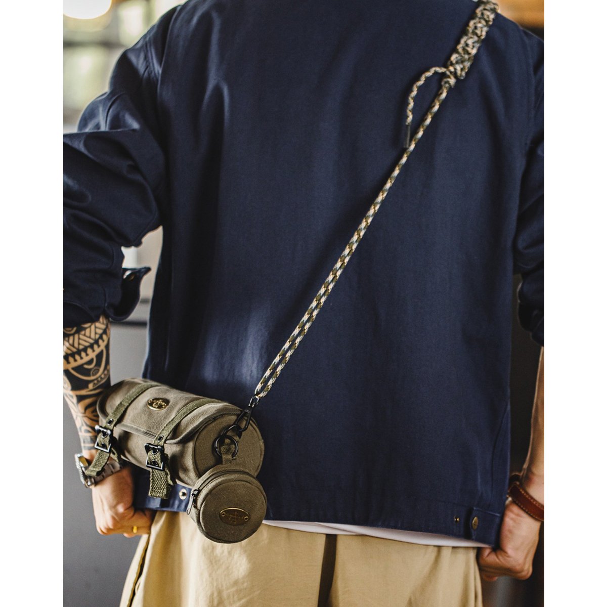 2.取り外し可能サークルバッグ付き 編み込みロープストラップキャンバスバレルバック