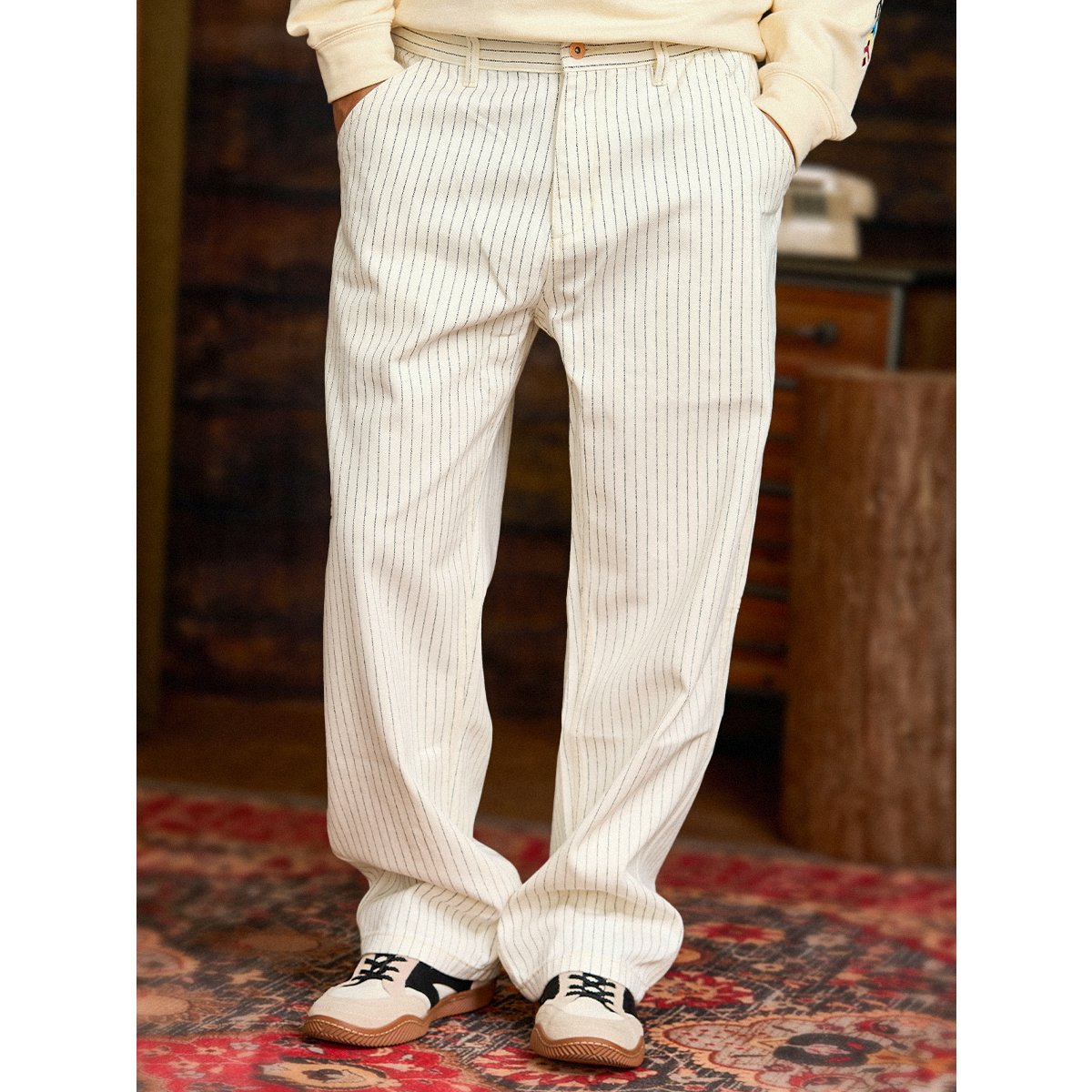 クラシカルなウォバッシュストライプを爽やかなホワイトデニムに落とし込んだ一本。