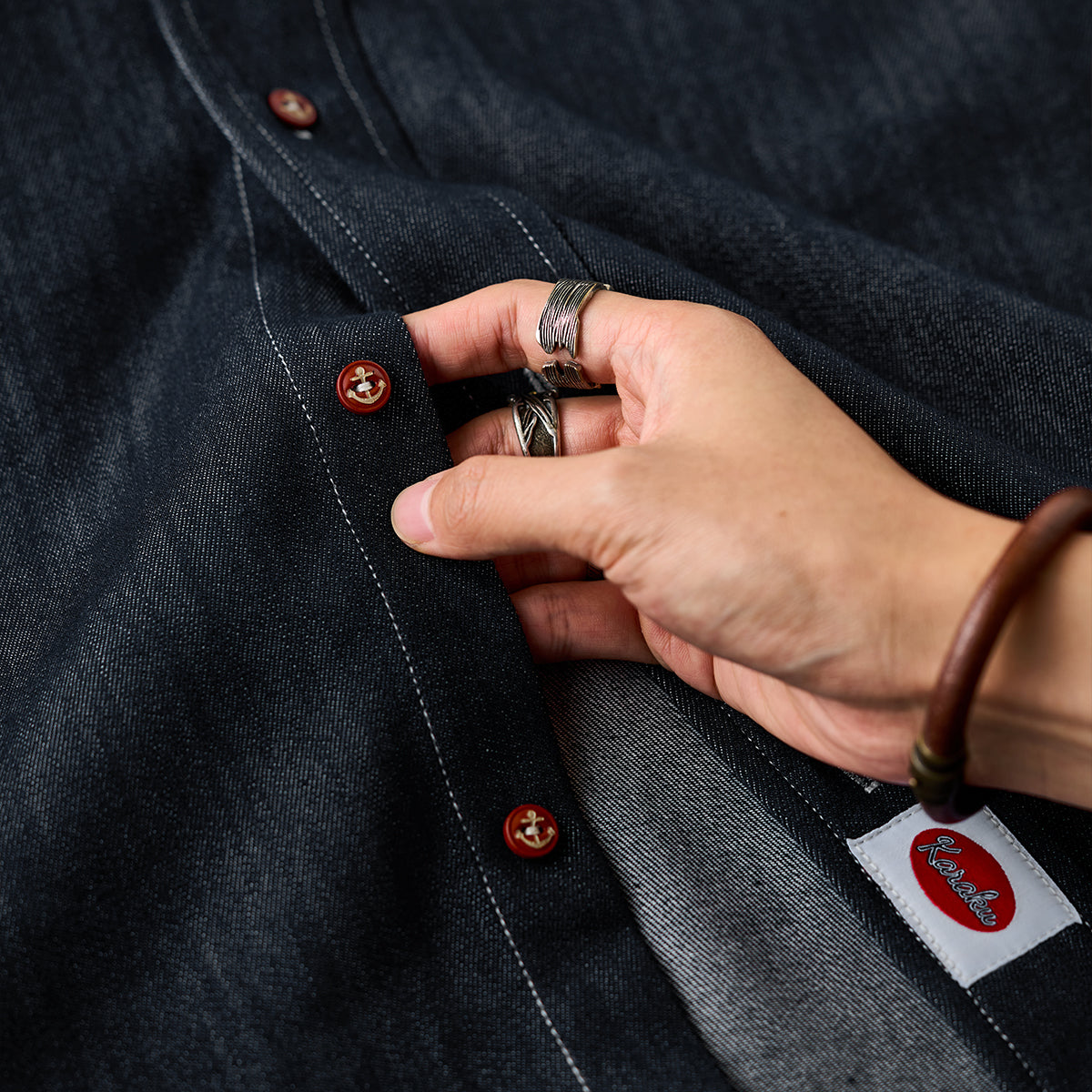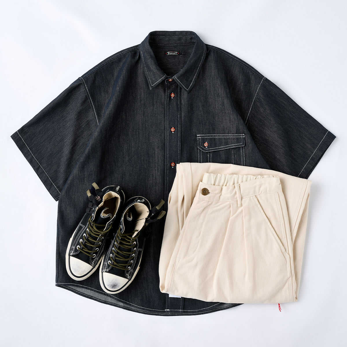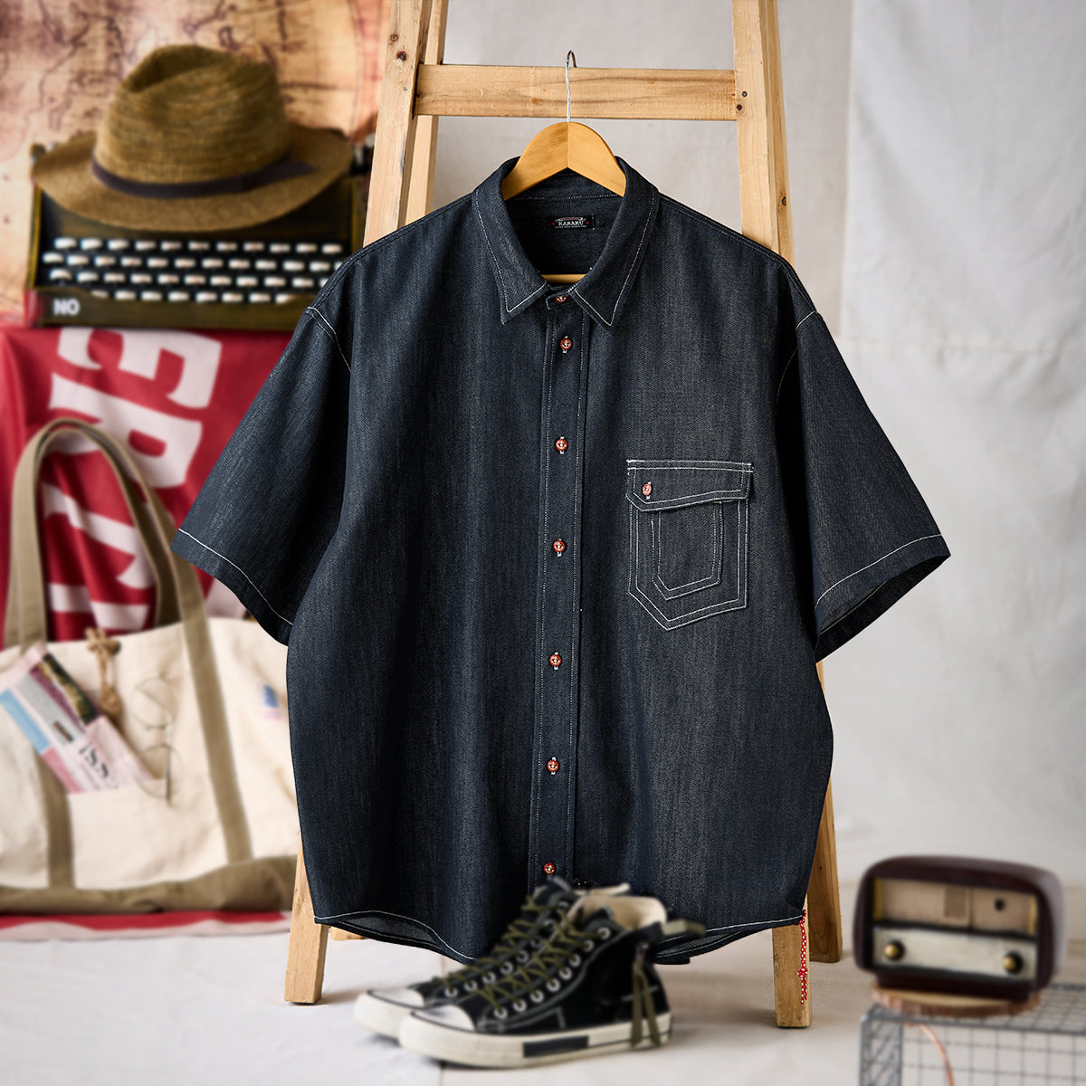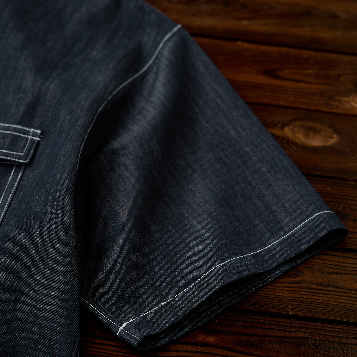 ミリタリーの名作「海軍CPOシャツ」をモチーフに、夏仕様へとアレンジを加えた半袖デニムシャツ。