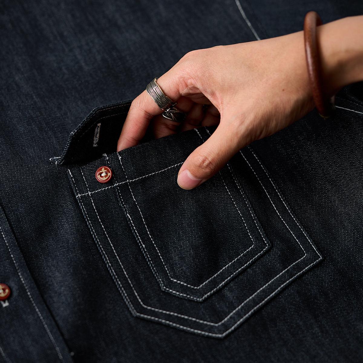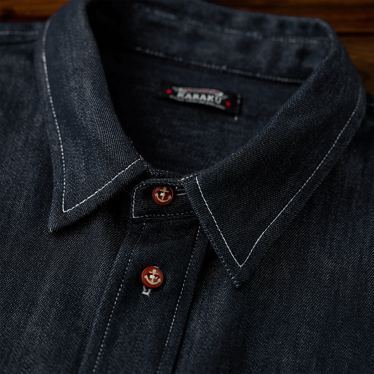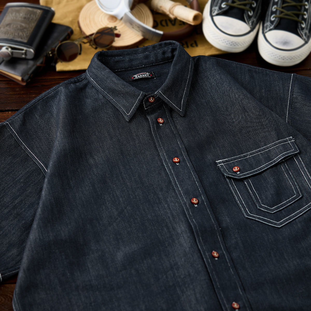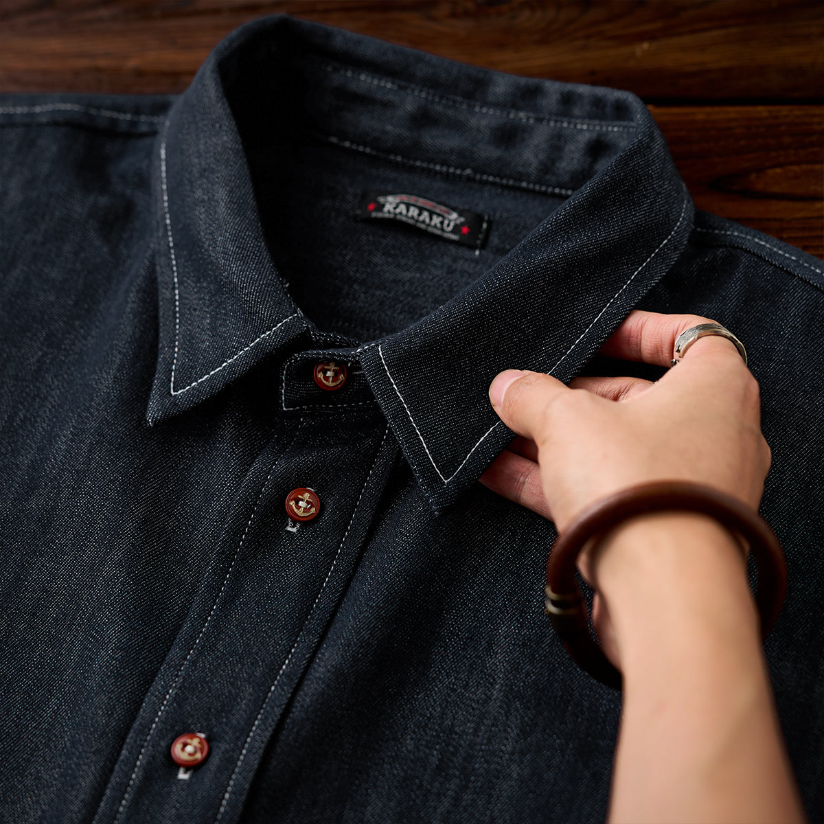 ミリタリーの名作「海軍CPOシャツ」をモチーフに、夏仕様へとアレンジを加えた半袖デニムシャツ。