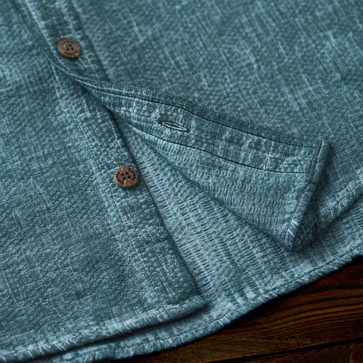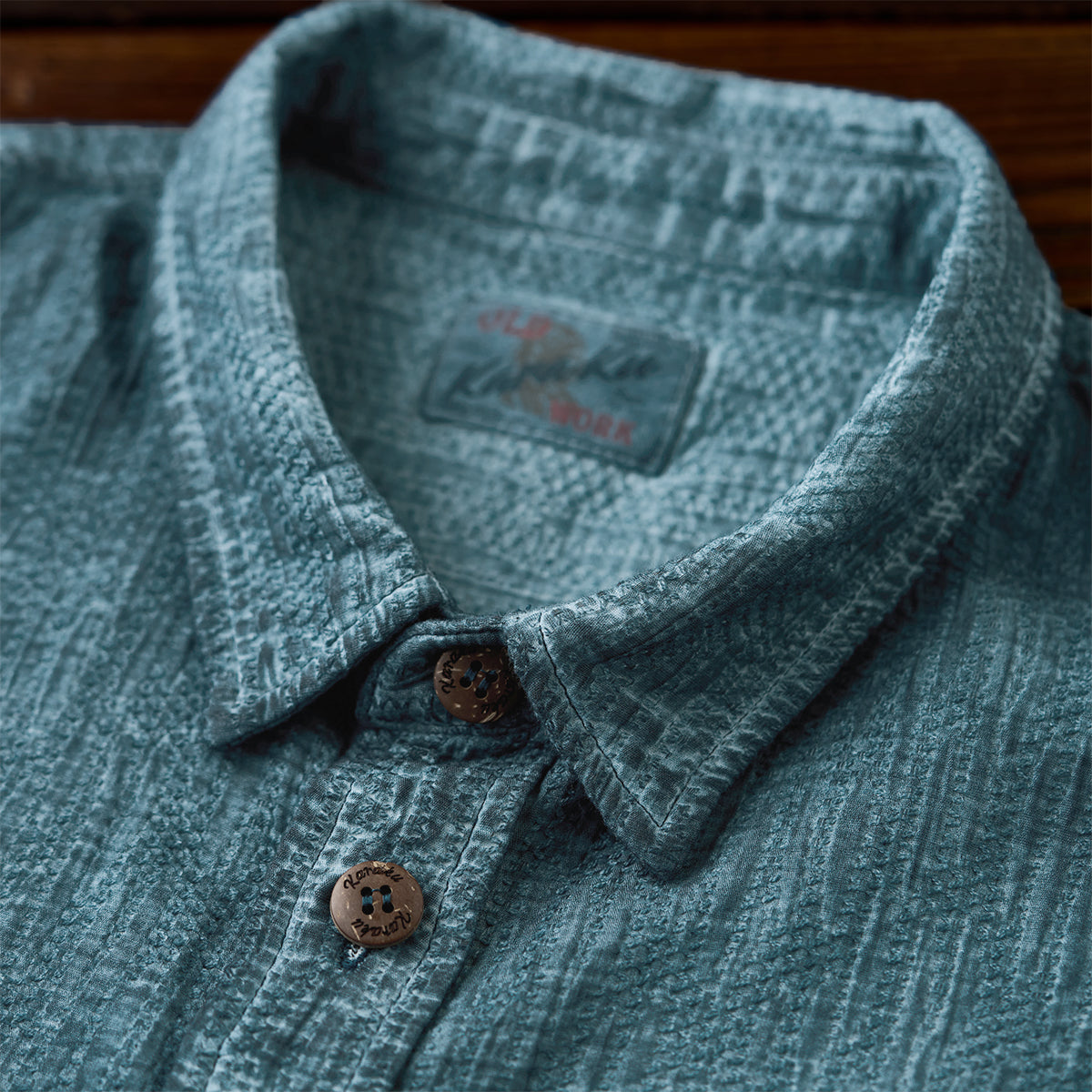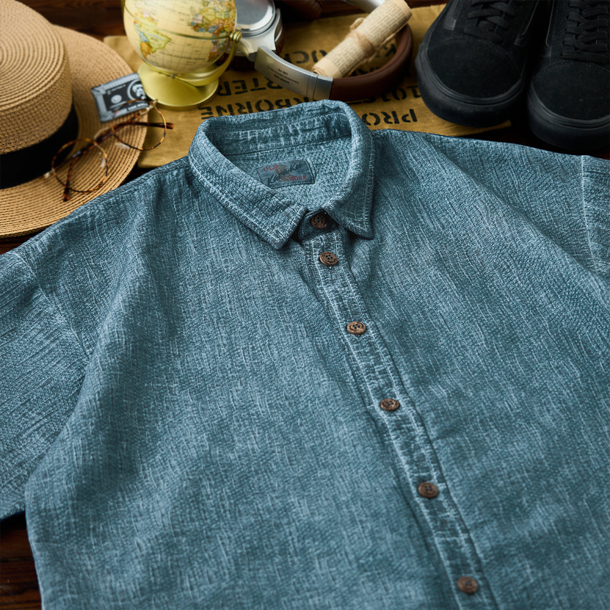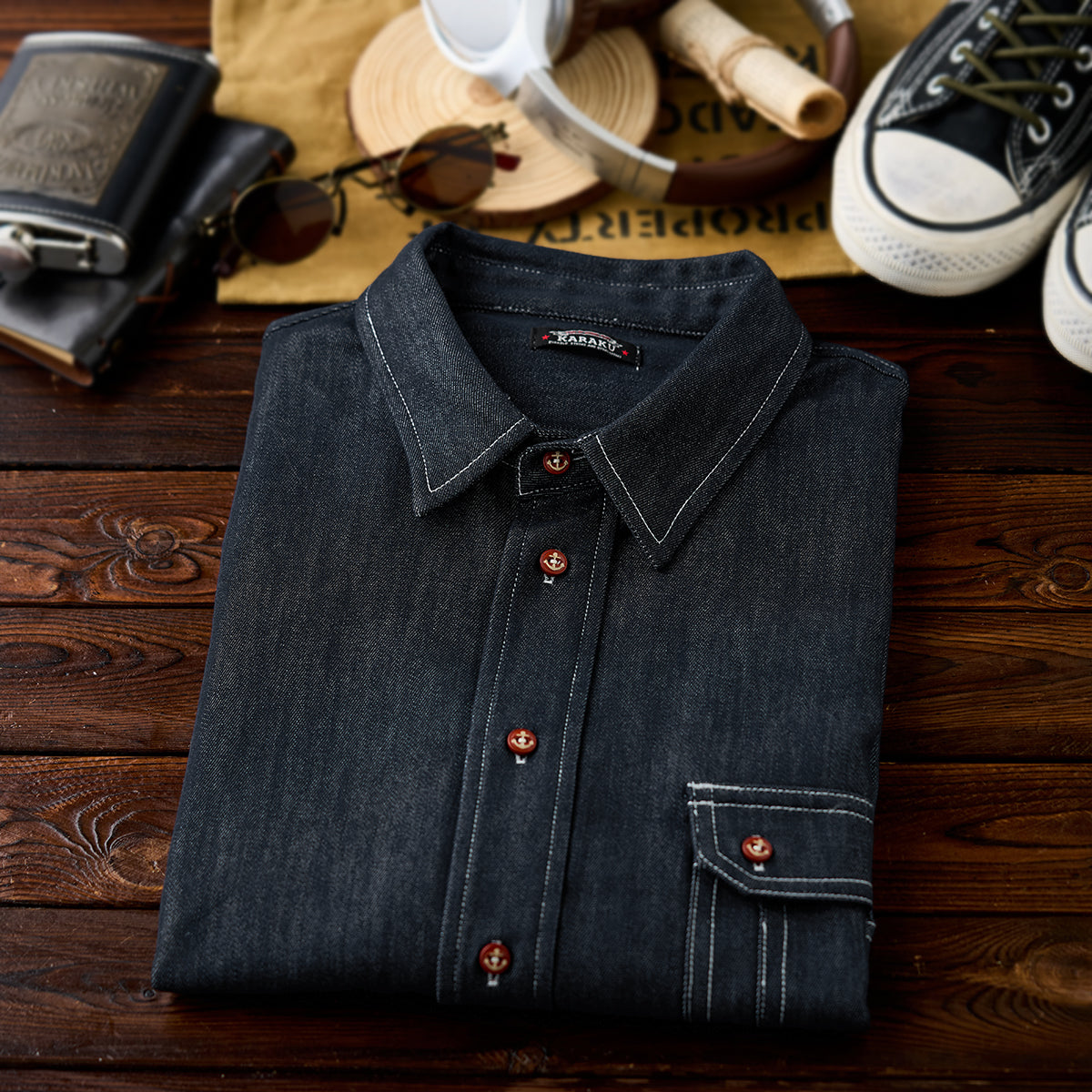 ミリタリーの名作「海軍CPOシャツ」をモチーフに、夏仕様へとアレンジを加えた半袖デニムシャツ。