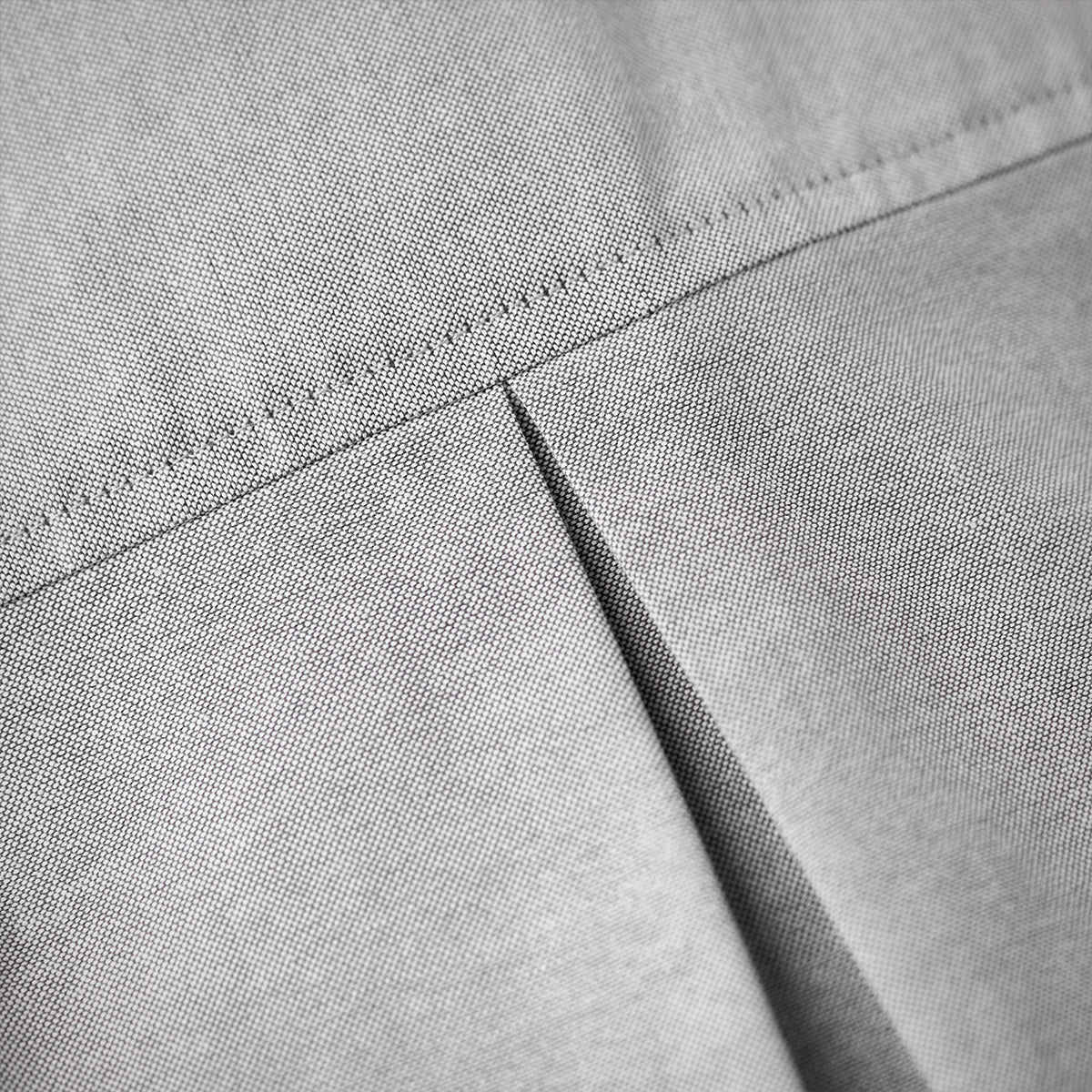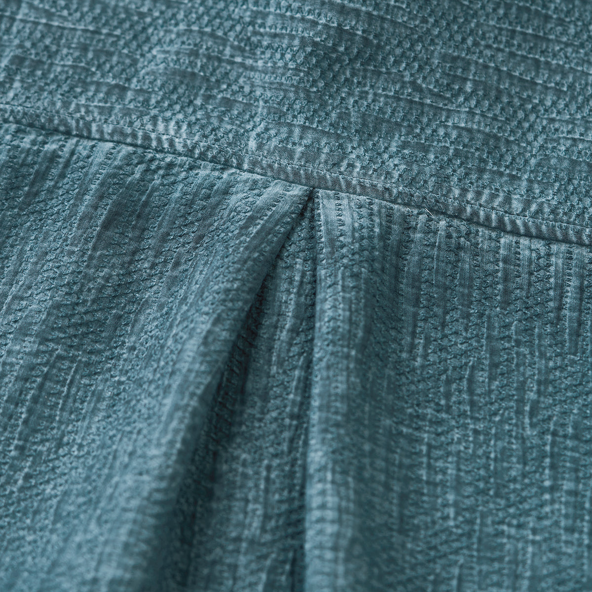 さりげない存在感を放つ、赤いヒモがアクセント。織り模様で表情をつけたジャカード生地を使用し、シンプルながら奥行きのある一着に仕上げました。