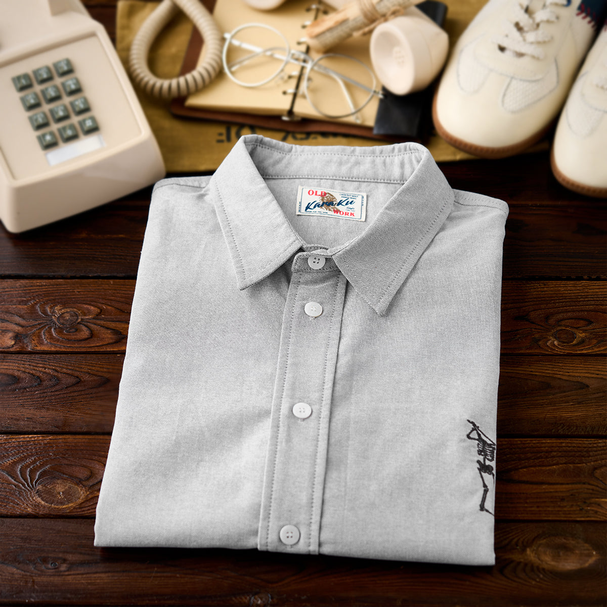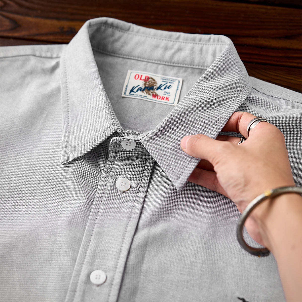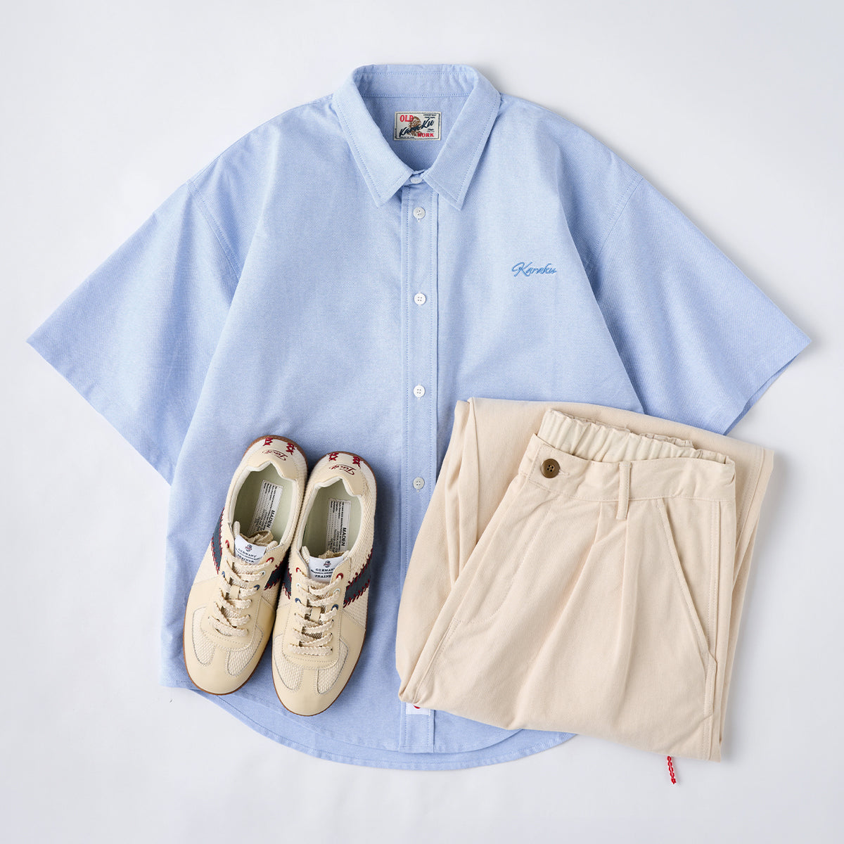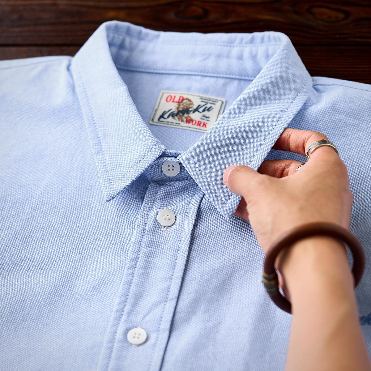 Item03.Cleanfit 赤ヒモ付き 刺繍入りオックスフォード長袖シャツ