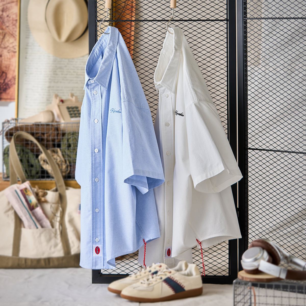 Item01.【予約】赤ヒモ付き ジャカード織りコットン半袖シャツ