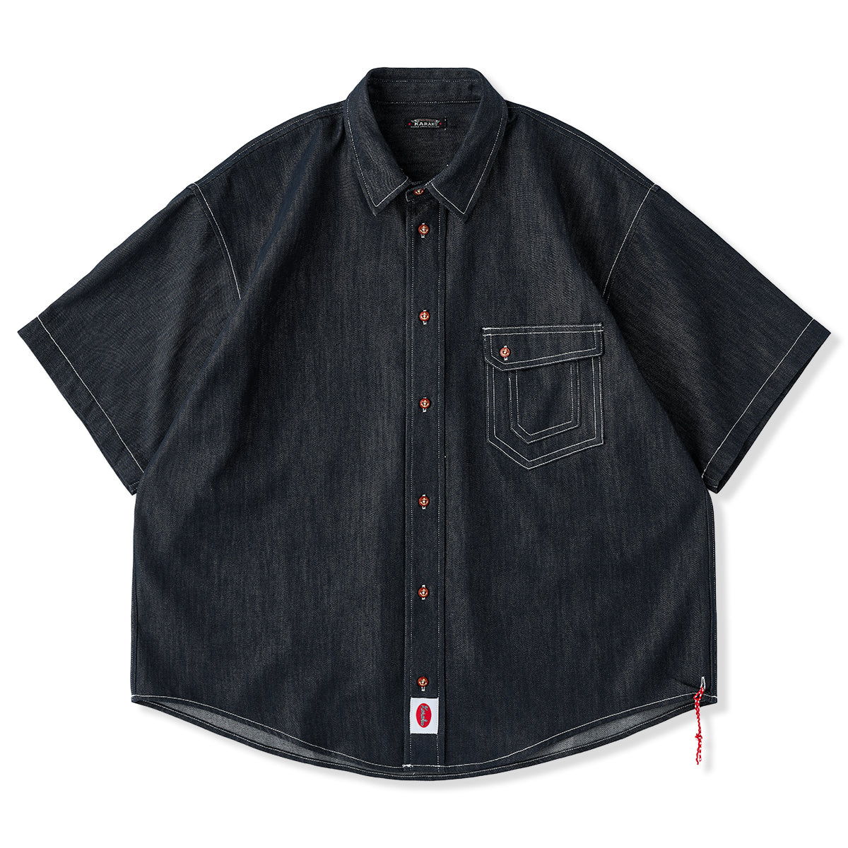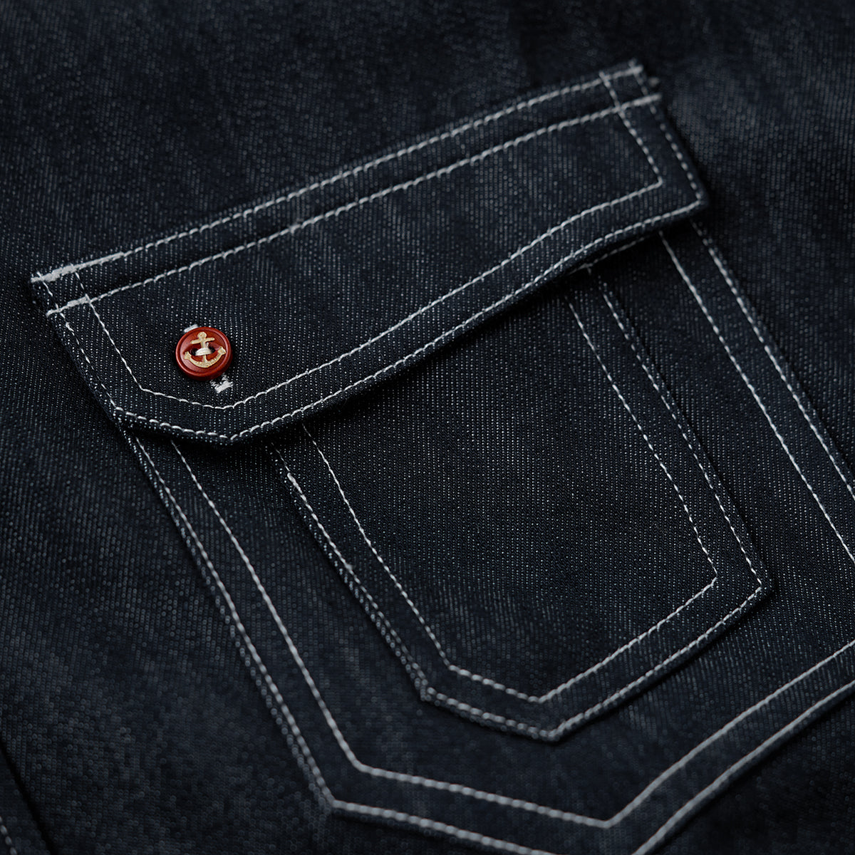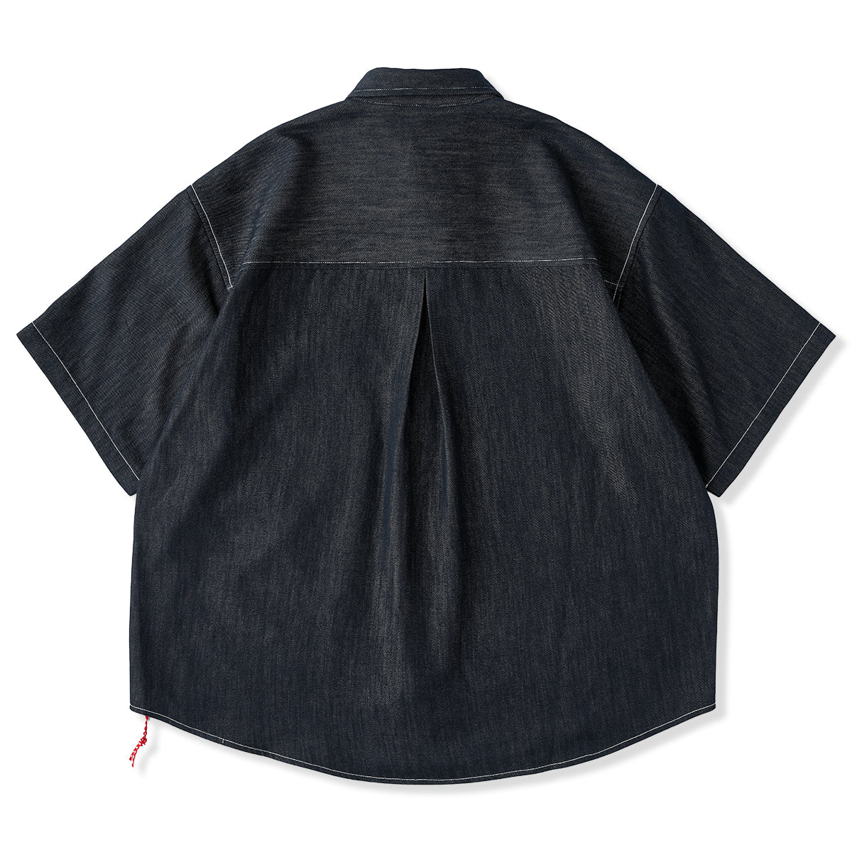 Item02.赤ヒモ付き ホワイトステッチ入り海軍CPOデニム半袖シャツ