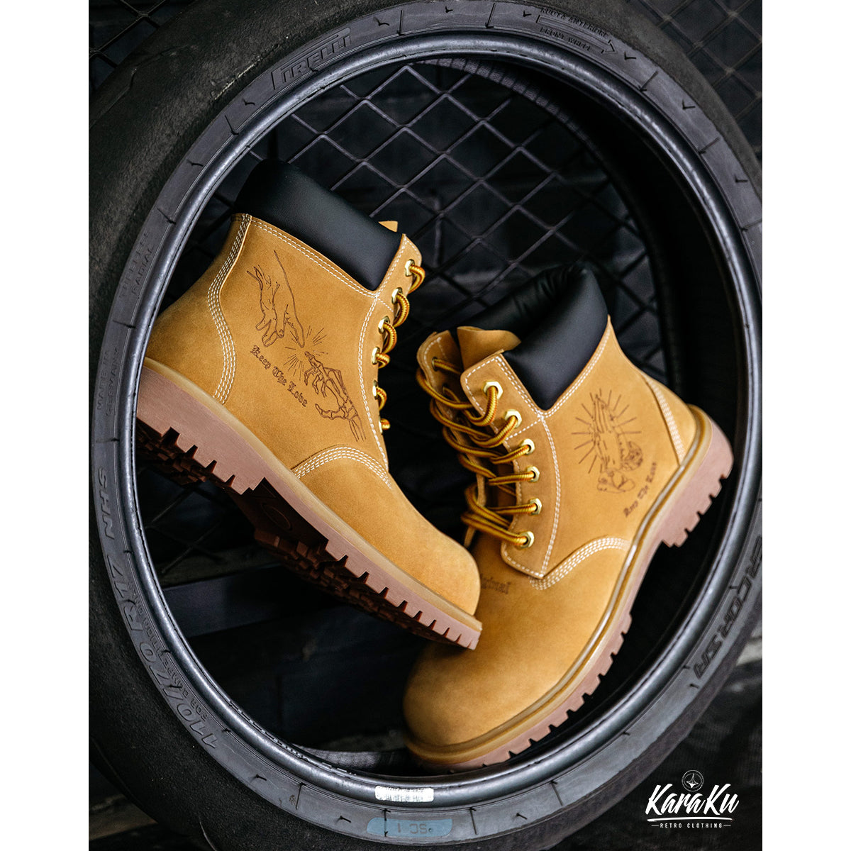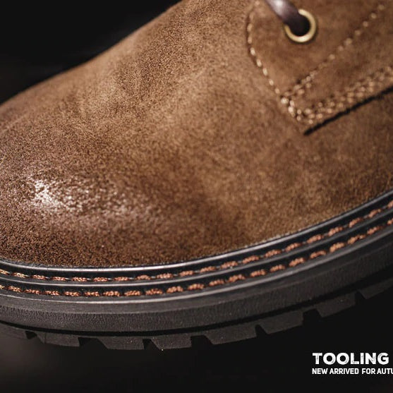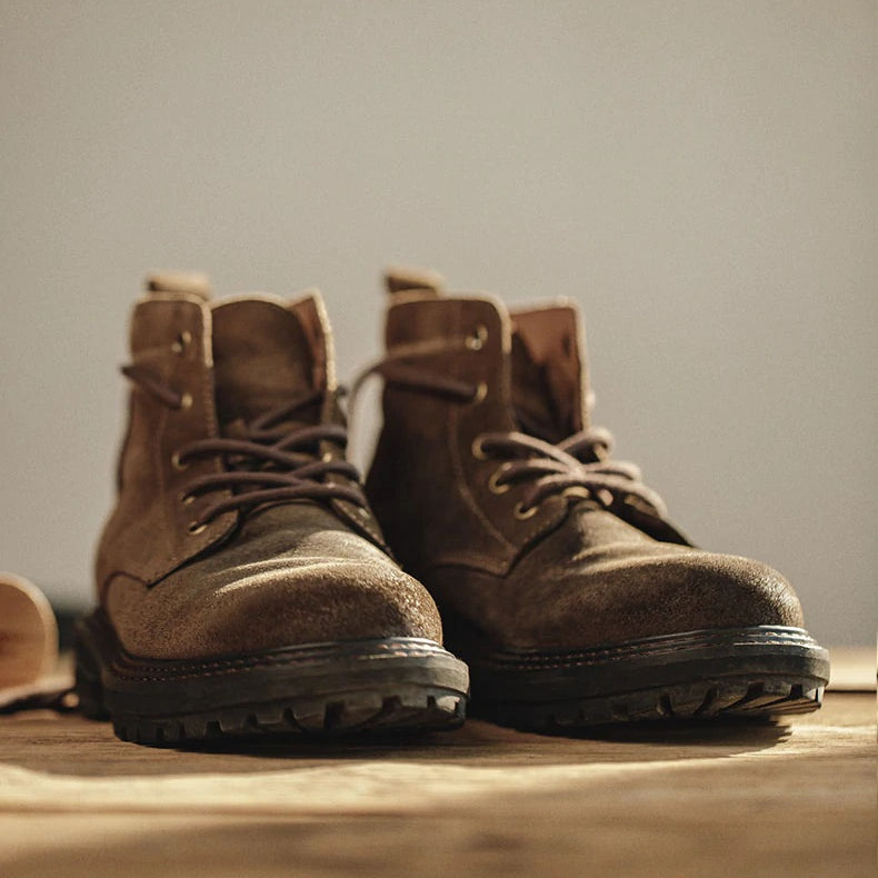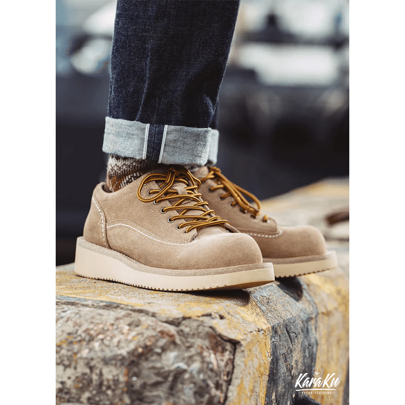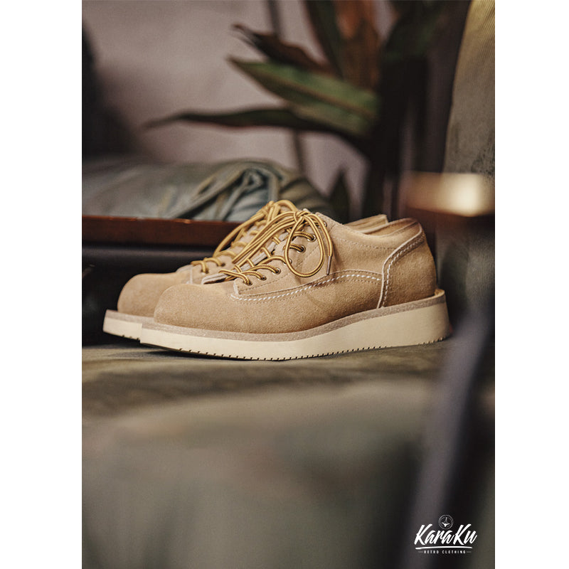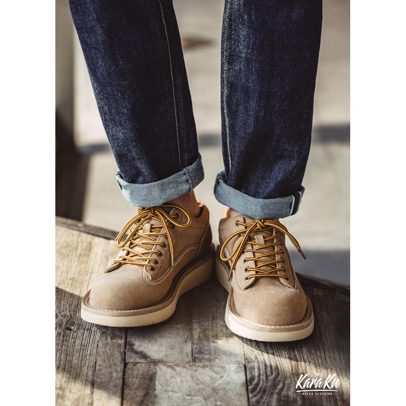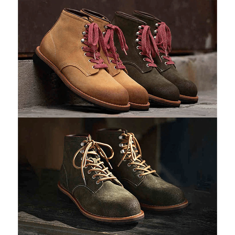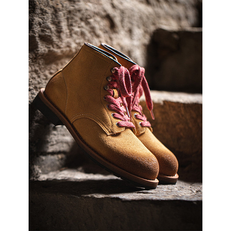 デザートブーツをベースに、自然のロックスをイメージしたカラーリングをリセットした、スエードと牛革トップレイヤーを採用、ちょっとワイルドなワークブーツです。