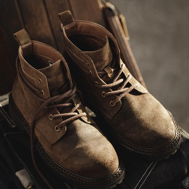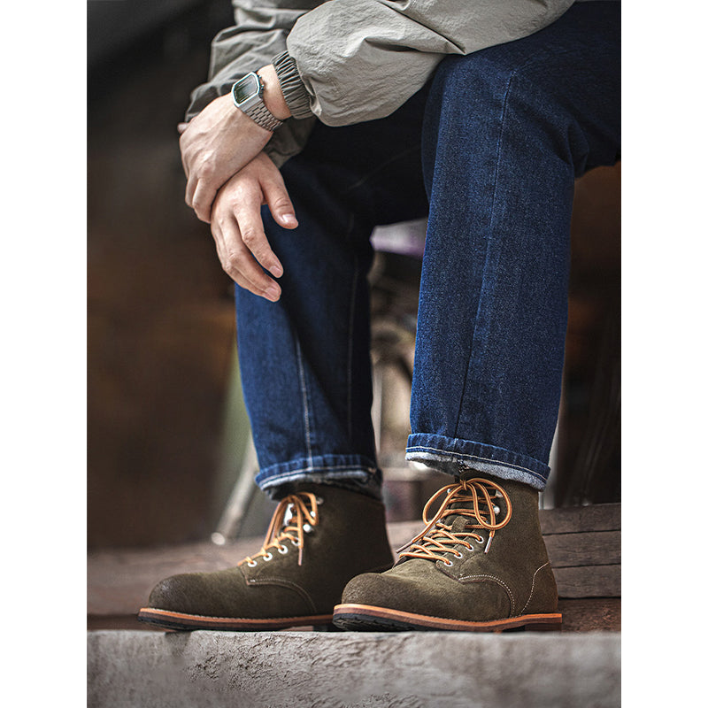 ③Gold plan 牛革×スエードレトロミッドワークブーツ