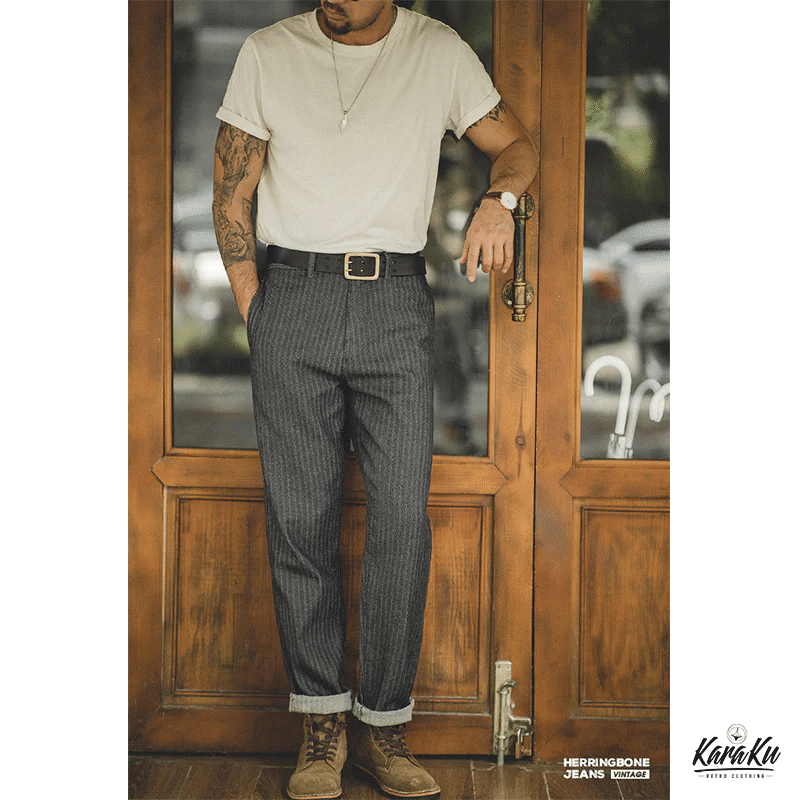 ITEM02.アメカジレトロヘリンボーンストレートスリムパンツ