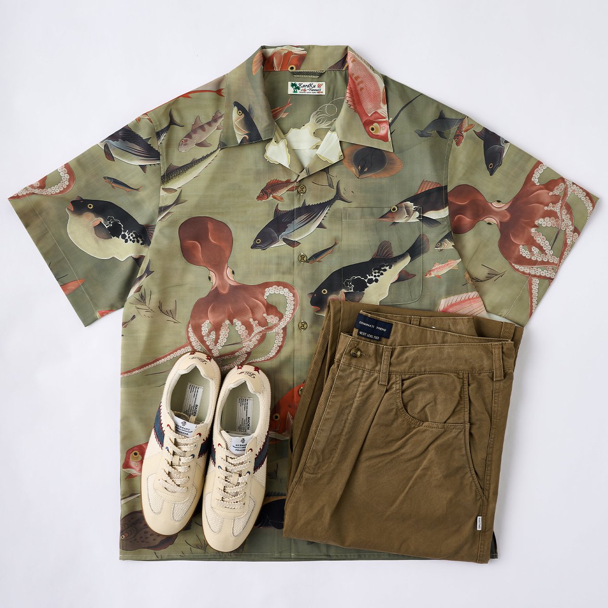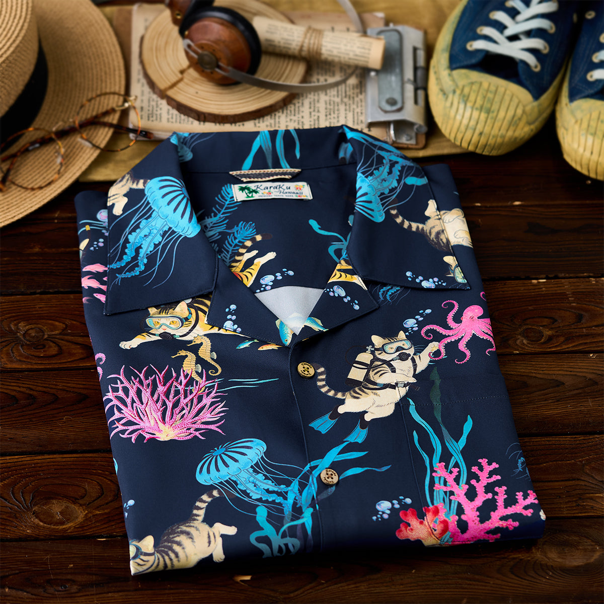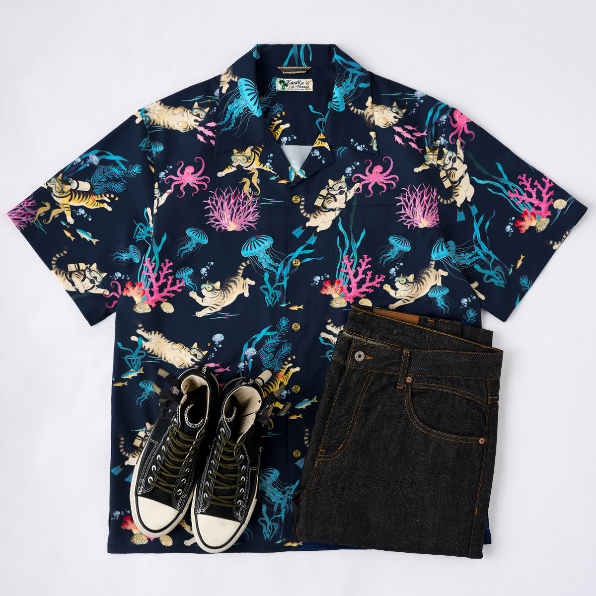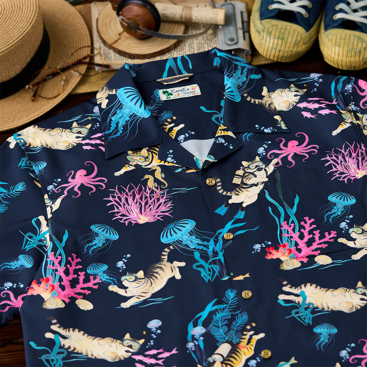 海洋生物アロハシャツは存在感が強いため、