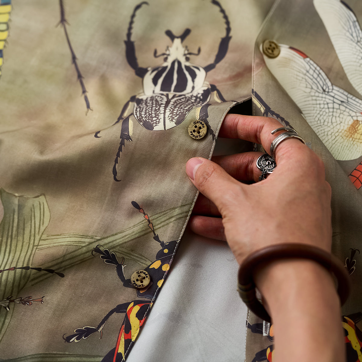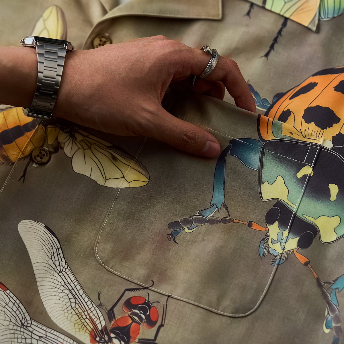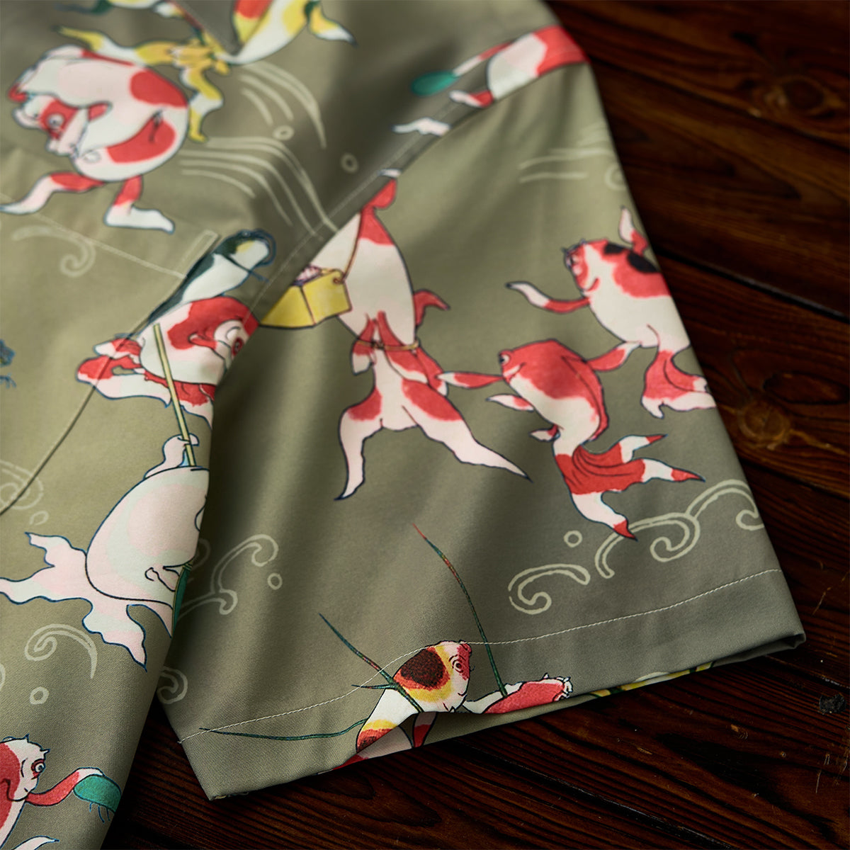 伊藤若冲が描いた「群魚図」の世界を、軽やかなアロハシャツに落とし込んだ一着。