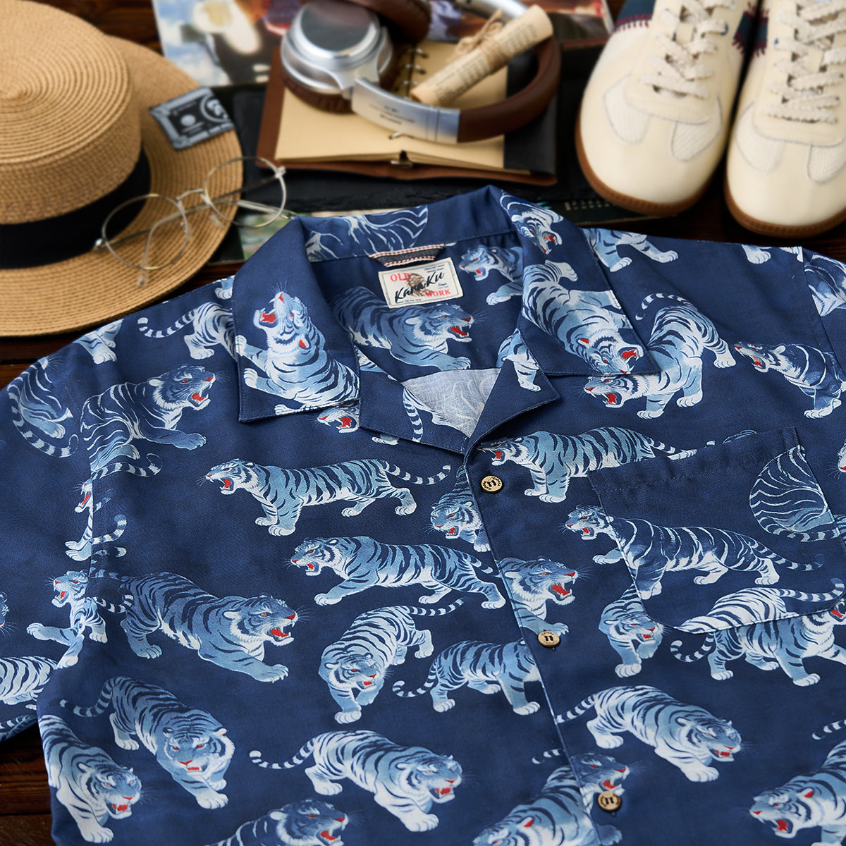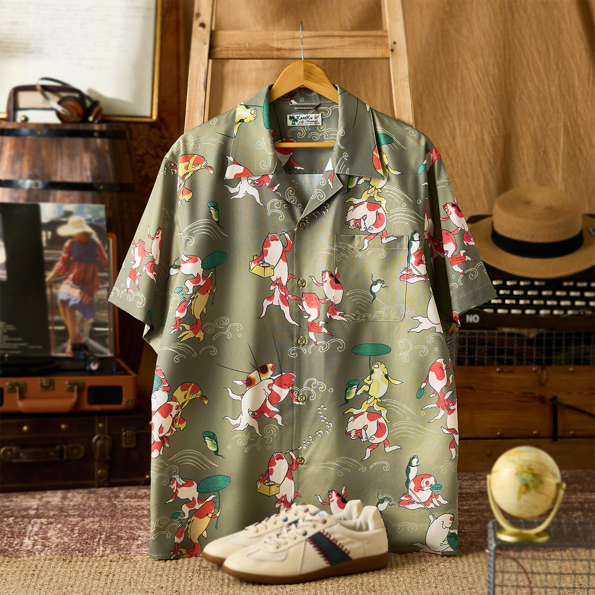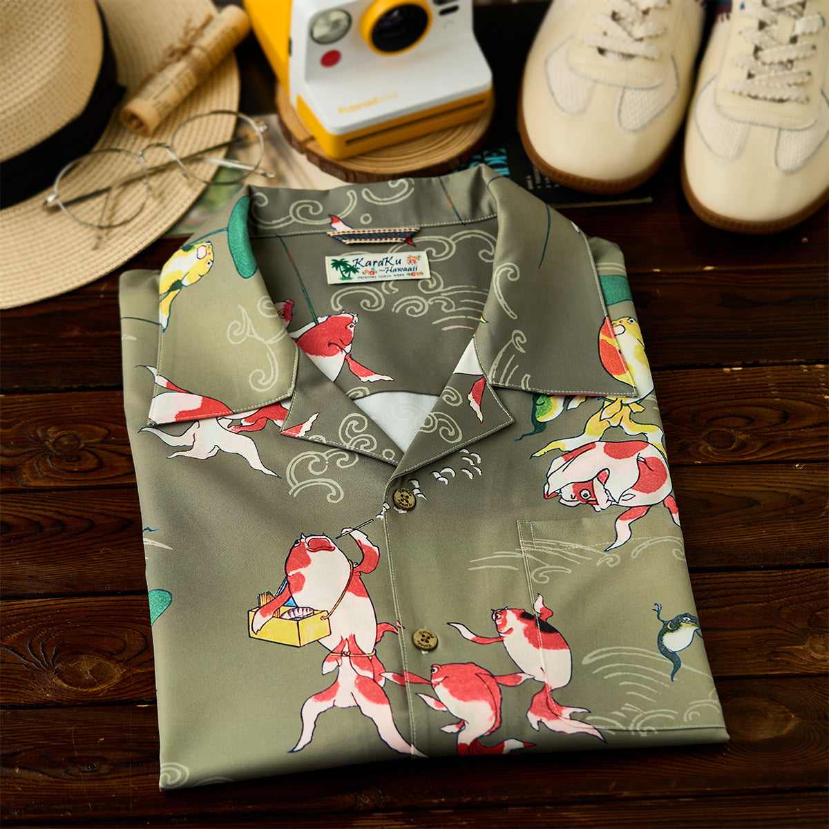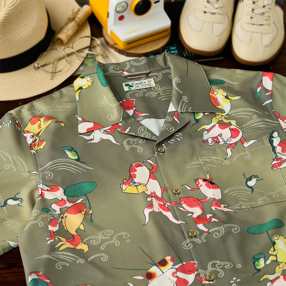 ITEM.01 伊藤若冲「群魚図」プリント入りオープンカラーアロハシャツ