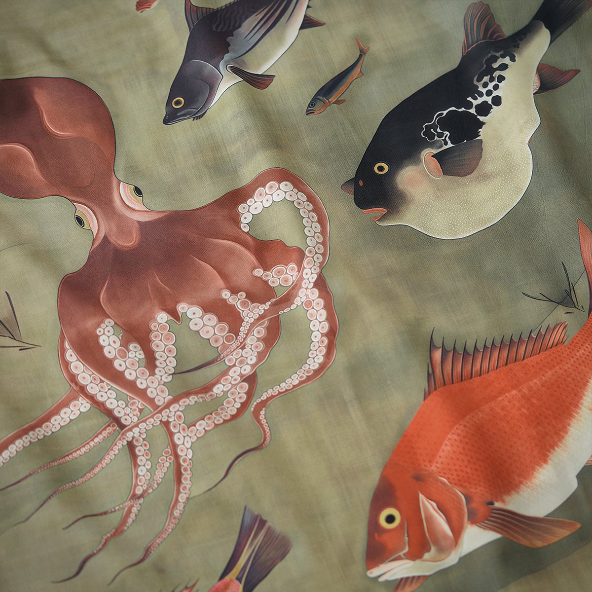 魚やエビがゆったり泳ぐデザインが、静けさと温もりを演出します。