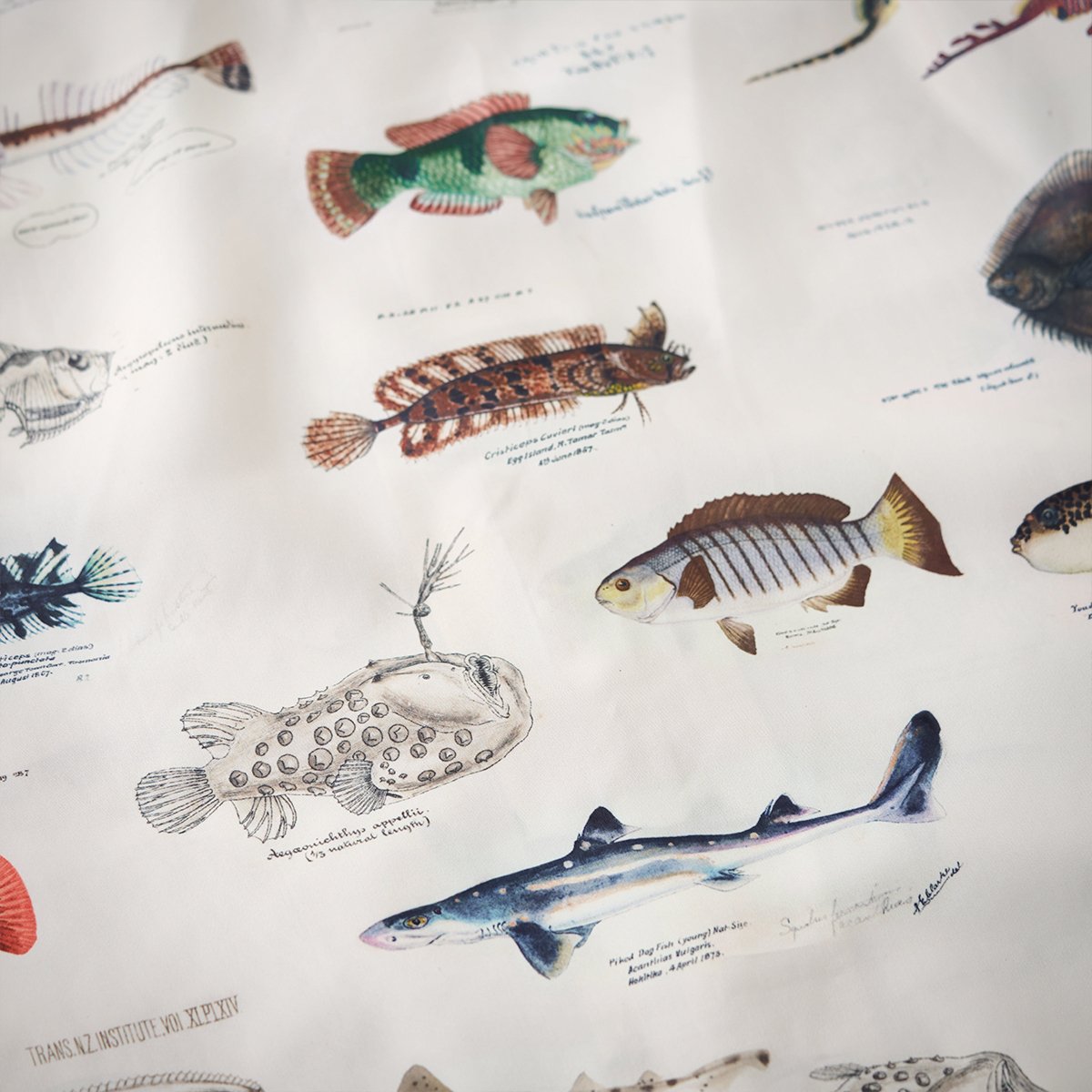 16種の魚を描いた存在感抜群の一枚。