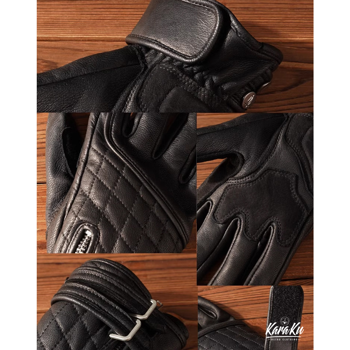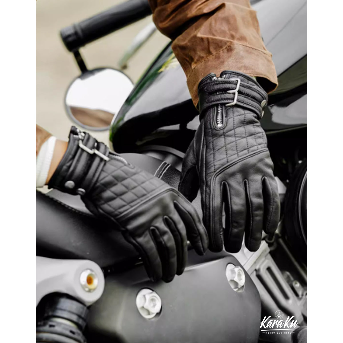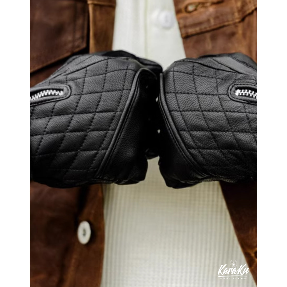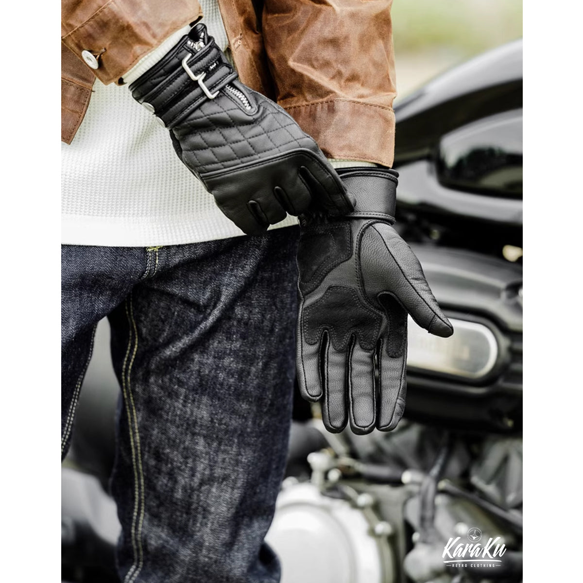 秋&冬 2タイプ選べるキルティング切替本革バイクグローブ
