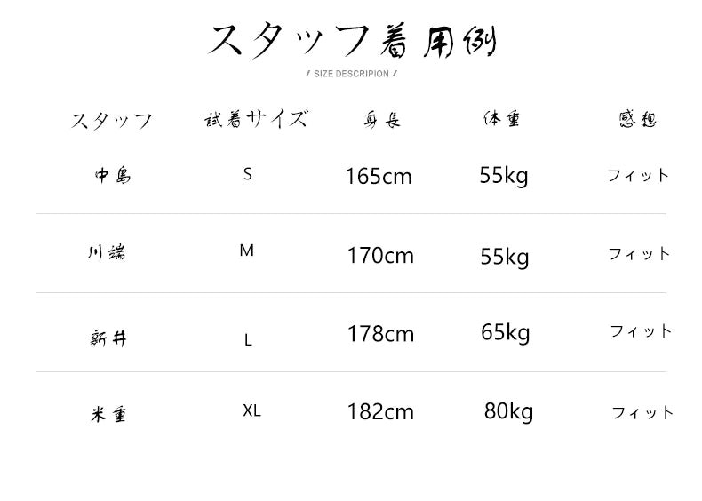 *サイズ表は、製品の生地や織りなどの特性により、多少の誤差はございます。予めご了承ください。