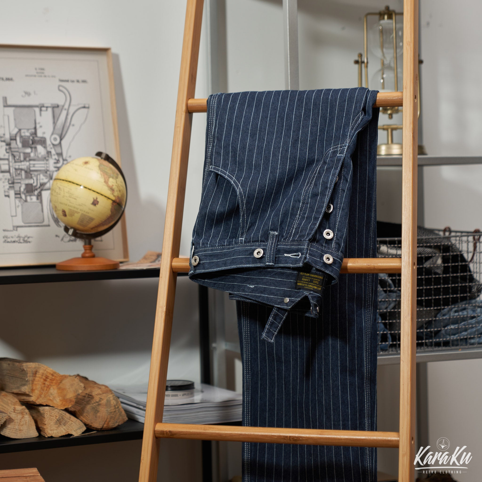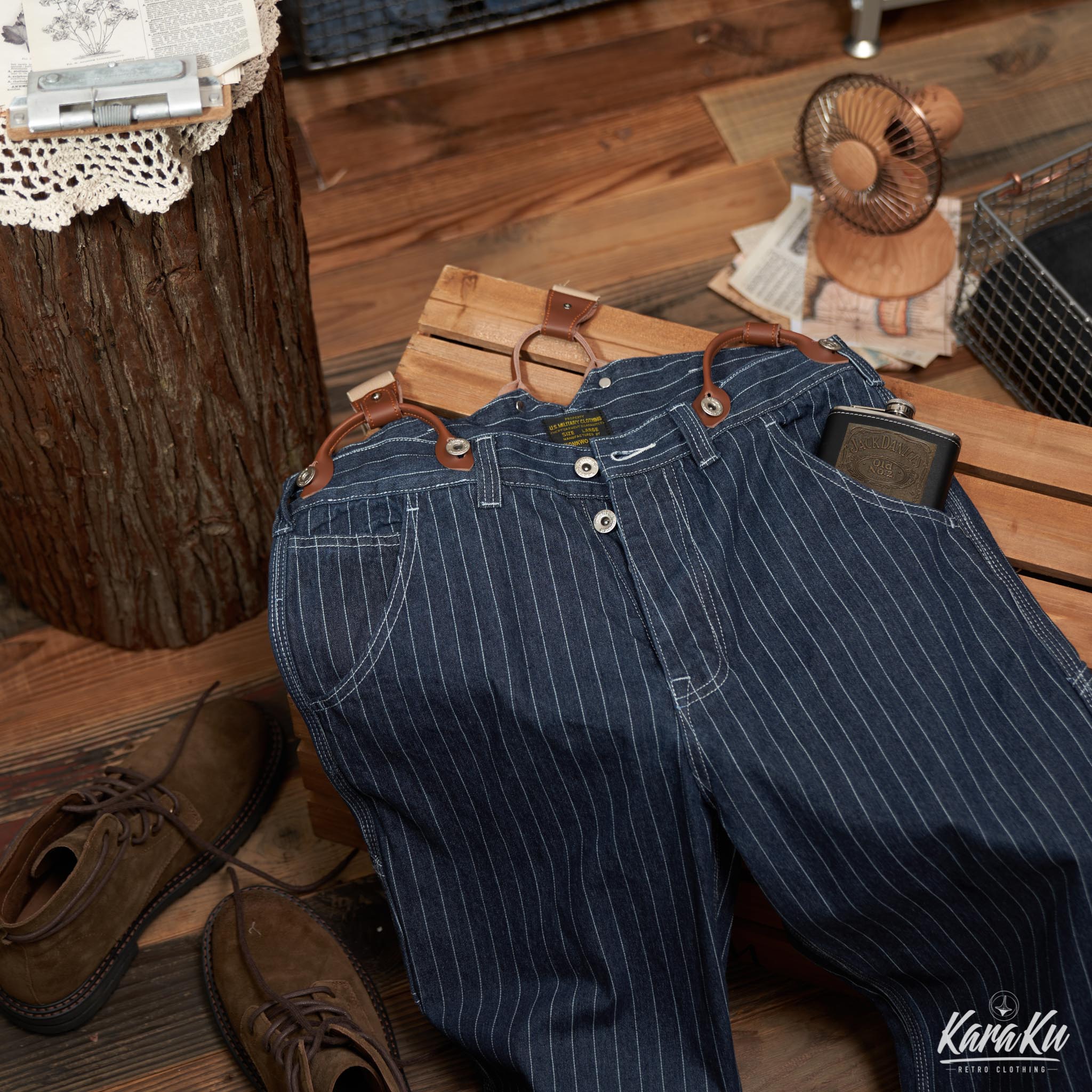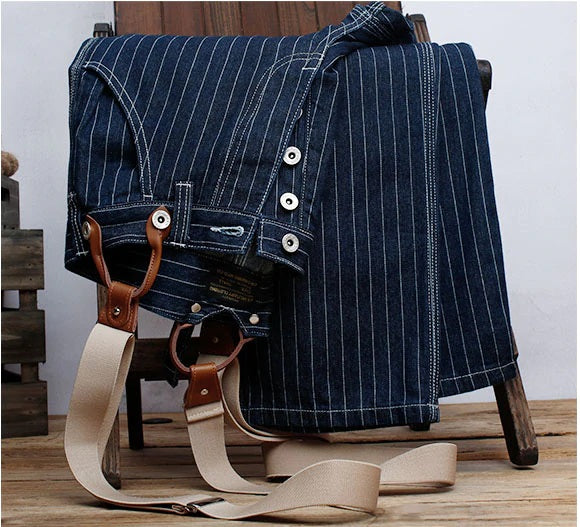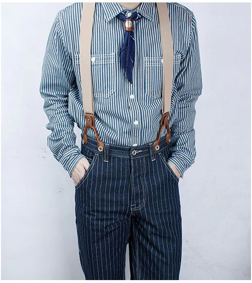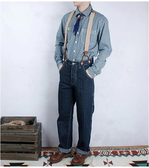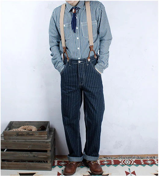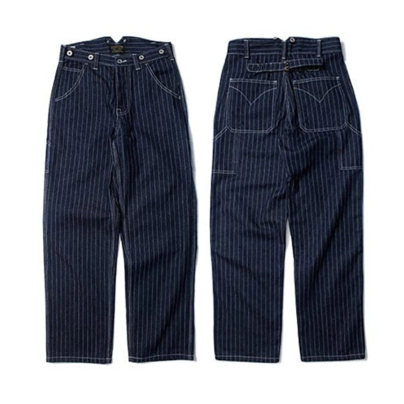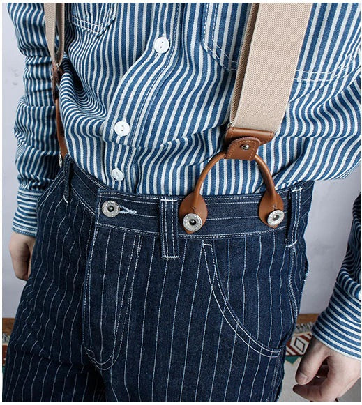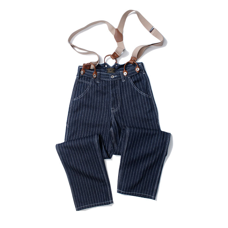 サスペンダー付きストライプワークパンツ
