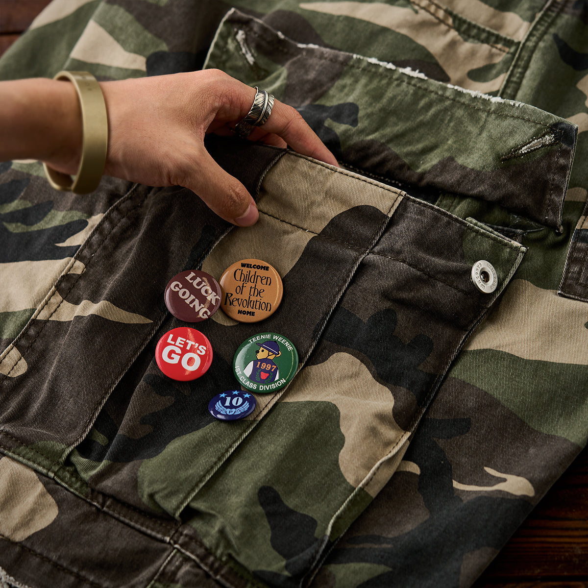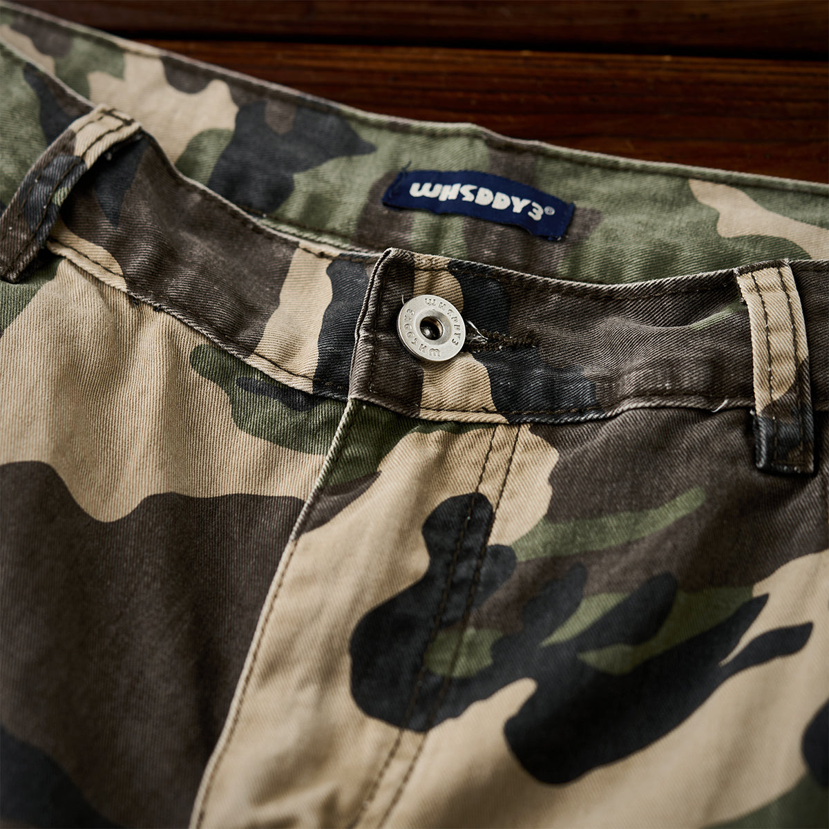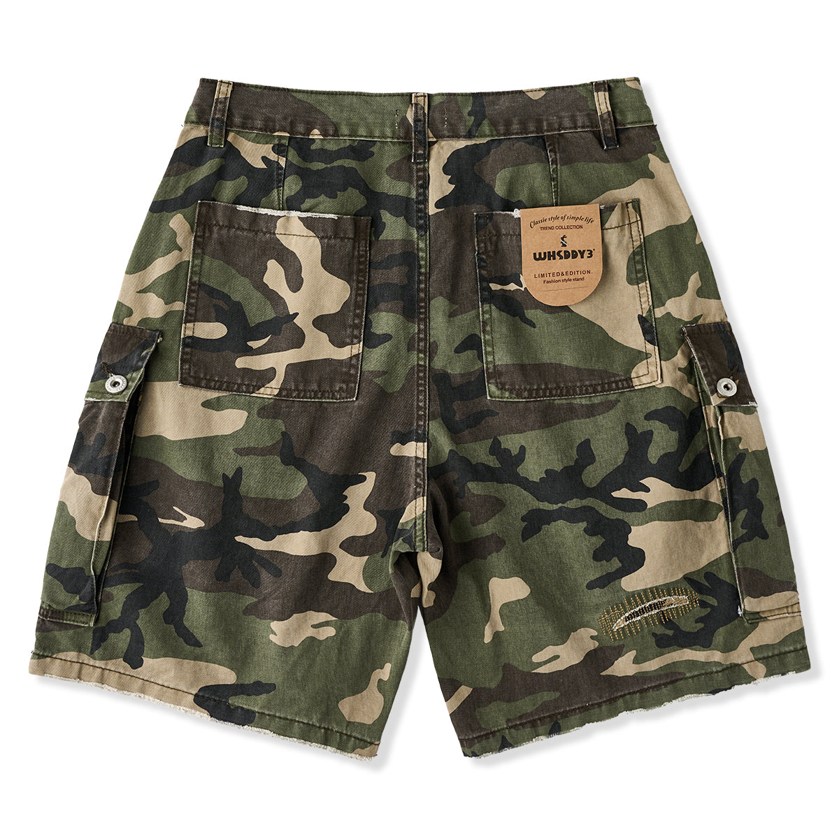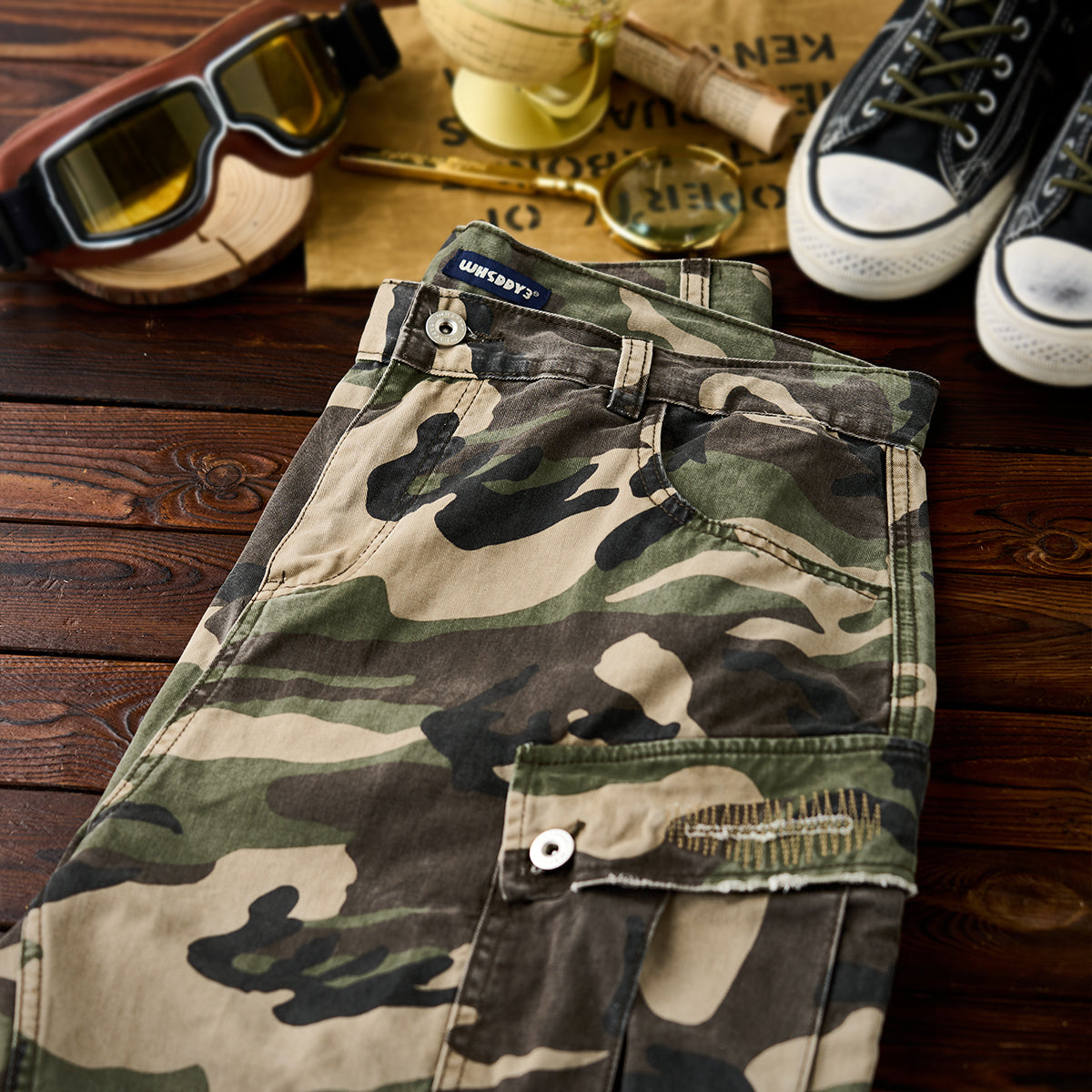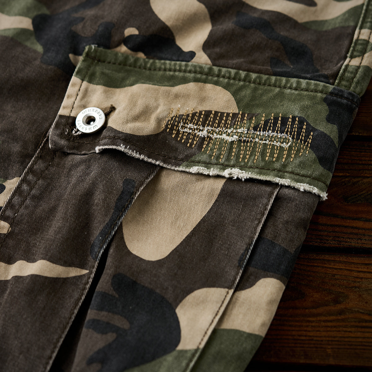 レトロバッジ付き 迷彩柄ショートカーゴパンツ