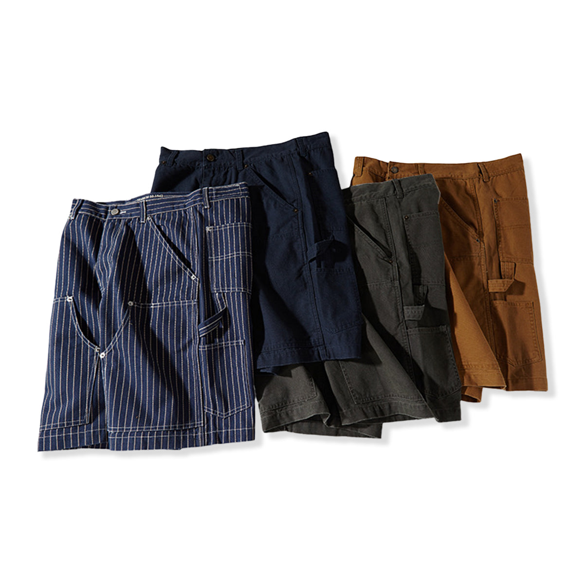 タフな12オンスのキャンバス生地を使用した、本格派ワークショーツが登場!木こりの作業着から着想を得た、頑丈で実用的なつくりをベースに、日常でも楽に履ける。フロントとバックには大型のユーティリティポケットを装備。見た目だけでなく機能性にも優れ、アウトドアやDIYシーンはもちろん、街中でも存在感を放ちます。