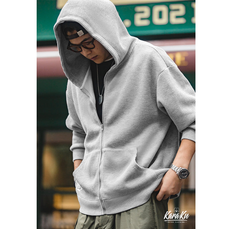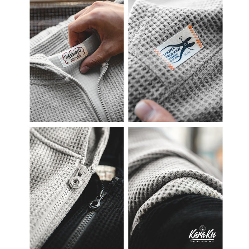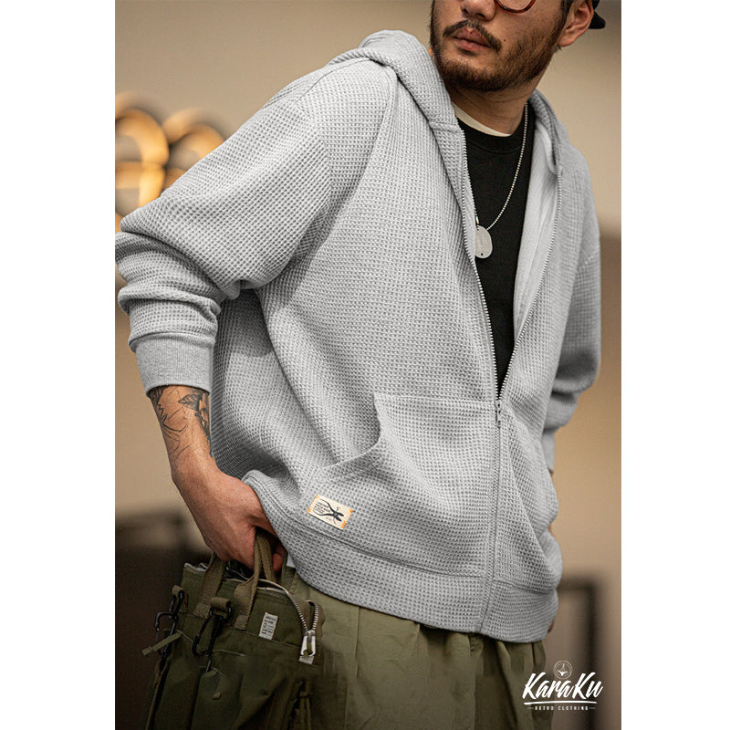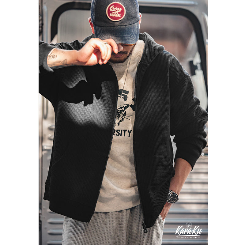 フード付き、寒い日でもヘッドの保温性を確保し、またデザインとしてもスポーティな雰囲気を演出、前立てにジップにアップデートして、デザイン性と脱着のしやすさを高めている、シーンに合わせたスタイリングが出来る。