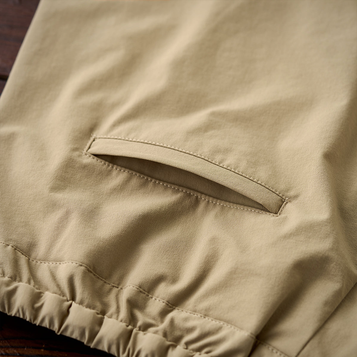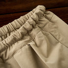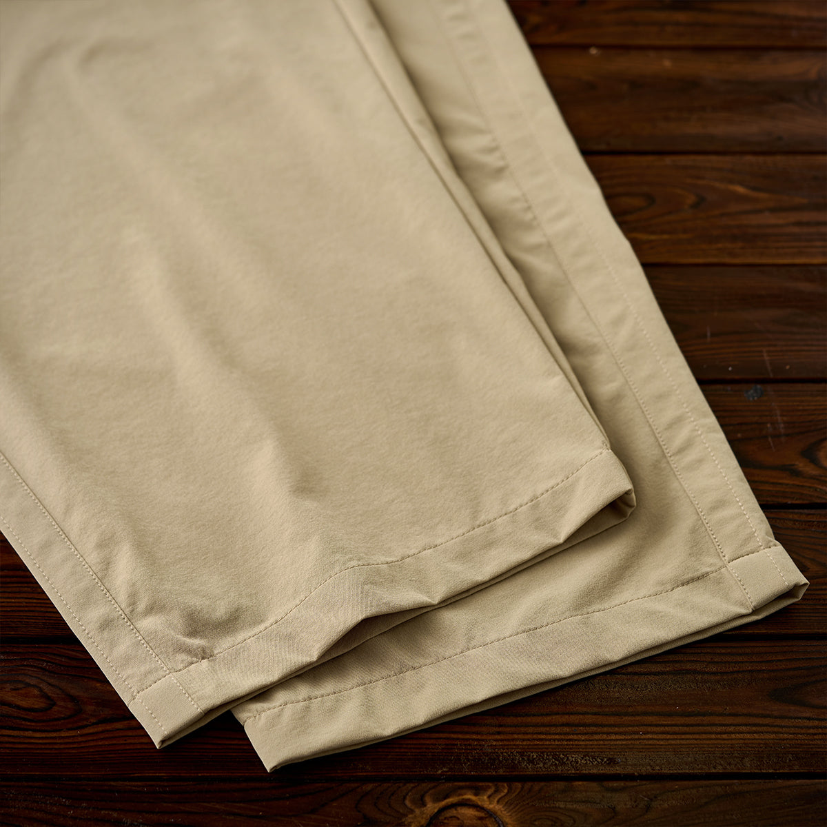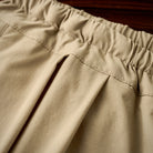 ヒップにはシンプルな片玉縁ポケットが配置されて、実用性を確保。ポケットのデザインは控えめで、全体のミニマルな印象を損ねない作りになっています。
