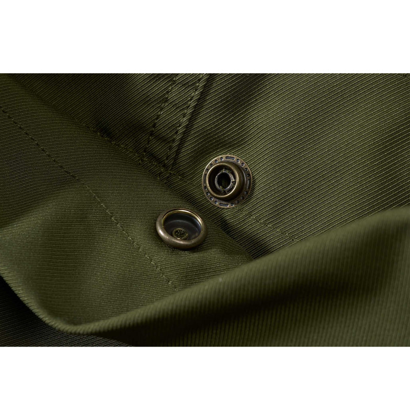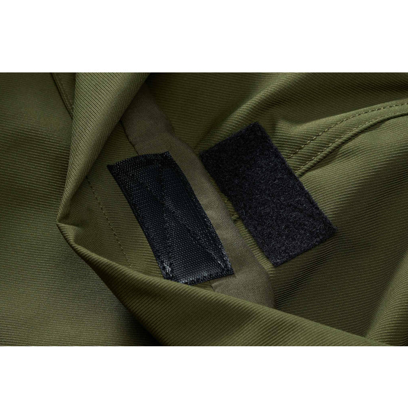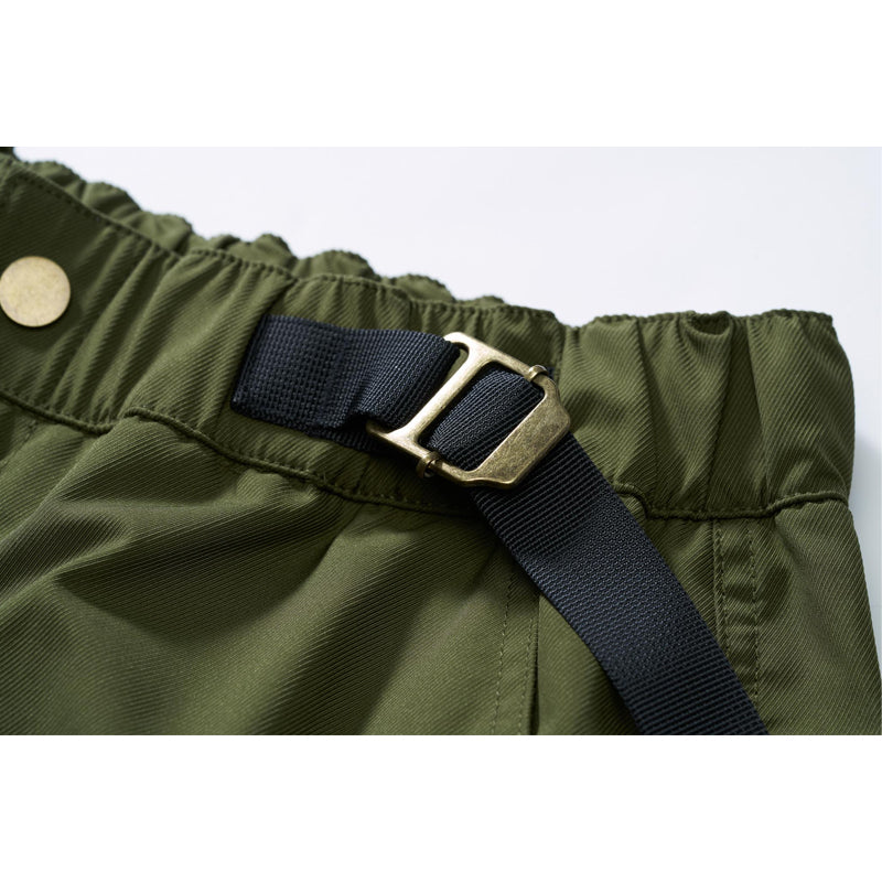 見た目の最大の特徴は、なんといってもヒップに取り付けられた横長の大きなフラップ付きカーゴポケット。この大きなポケットは、“ポンチョ”を入れるために採用された。また、フラップに関しては、伏せた状態でも中身が飛び出さないように採用された。