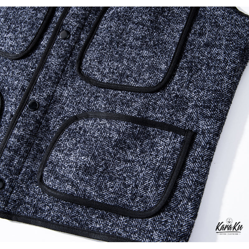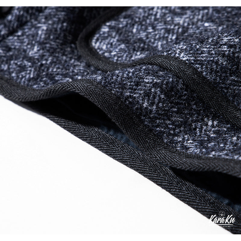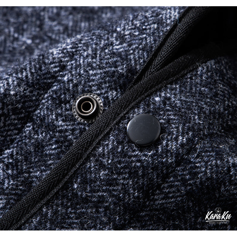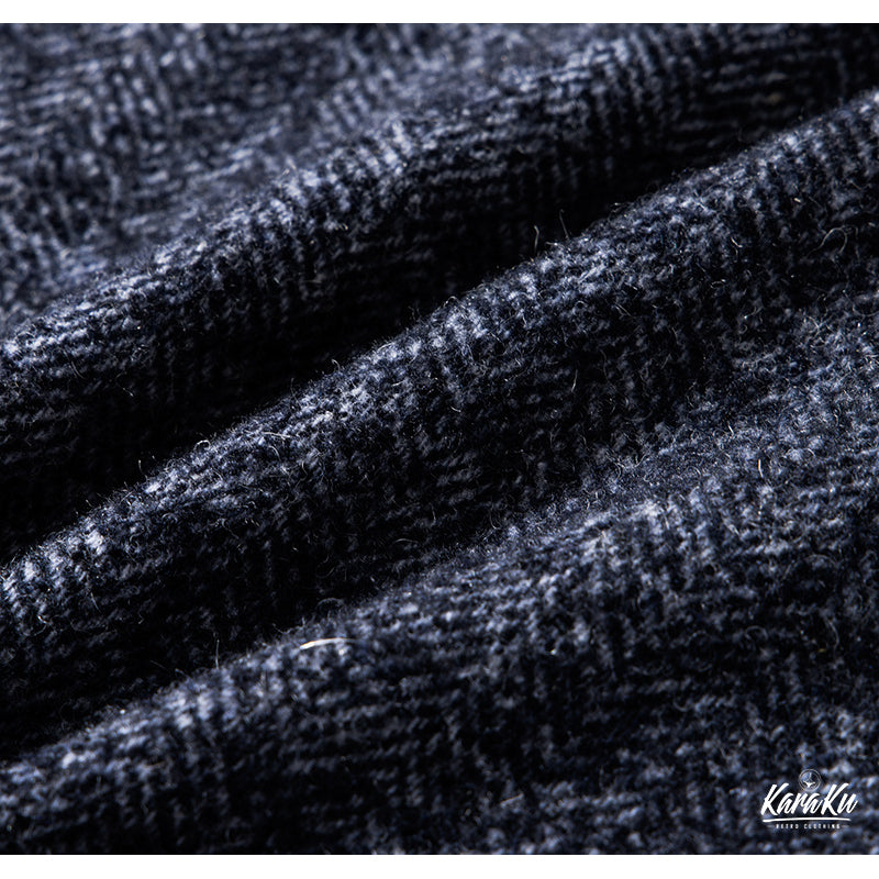 100年以上も昔、アウトドアマンの為に開発されたこの素材は表面のコットン編み物と裏面のウールフリースの2層構造となっておりいわばスウェットと同じ構造となっております。その割合は裏面のフリースが65%を占め、起毛をかなり強くかけることでニット製品とは思えない程の耐久性が生まれます。表面は2色の番手の異なる糸を撚り合わせることにより通称「ごま塩」と呼ばれる凹凸のBROWN'S BEACH特有の雰囲気を醸し出しております。現代のスタイルにはまりやすくする為にすっきりとしながらも、クラシカルな雰囲気がさまざまなコーディネートに取り入れやすいアイテムとなっており、4ポケットの最もポピュラーな形のジャケットです。オリジナルスナップボタンを採用。パイピング仕様に加え、襟をノーカラーさせ、よりクラシックな雰囲気となっております。
